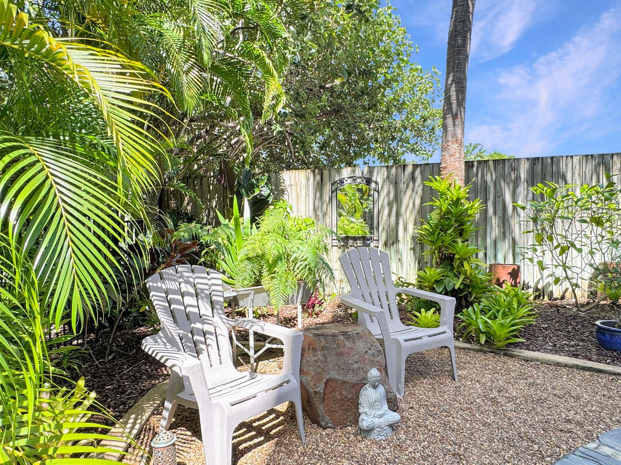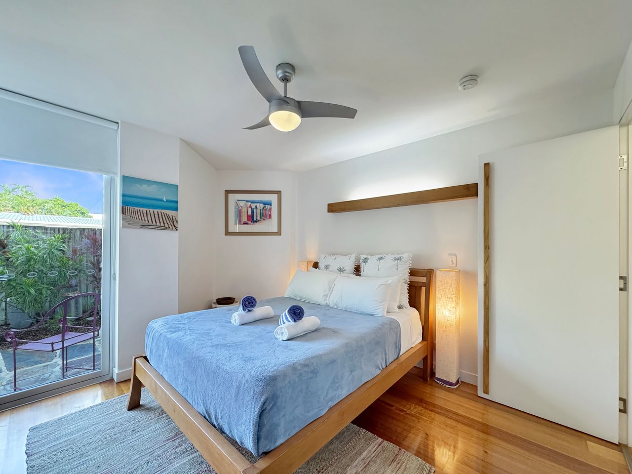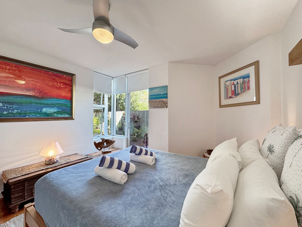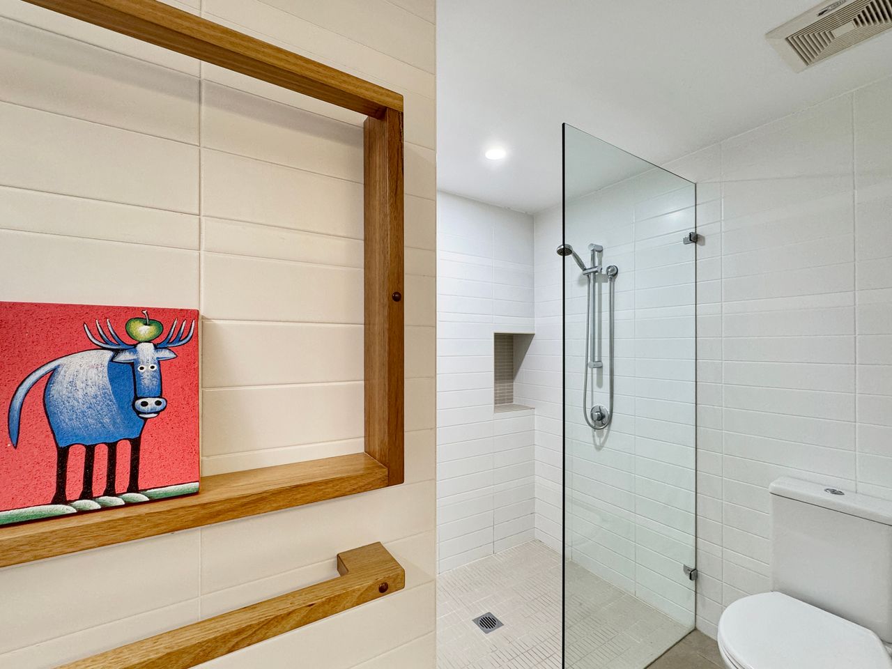 Apartment 2 is a ground-level retreat set back from the beachfront, offering added privacy and a peaceful outdoor garden area bordered by natural creek vegetation. It’s an ideal choice for couples or small groups seeking a quiet escape with all the benefits of this prime location. The apartment includes two comfortable queen bedrooms.