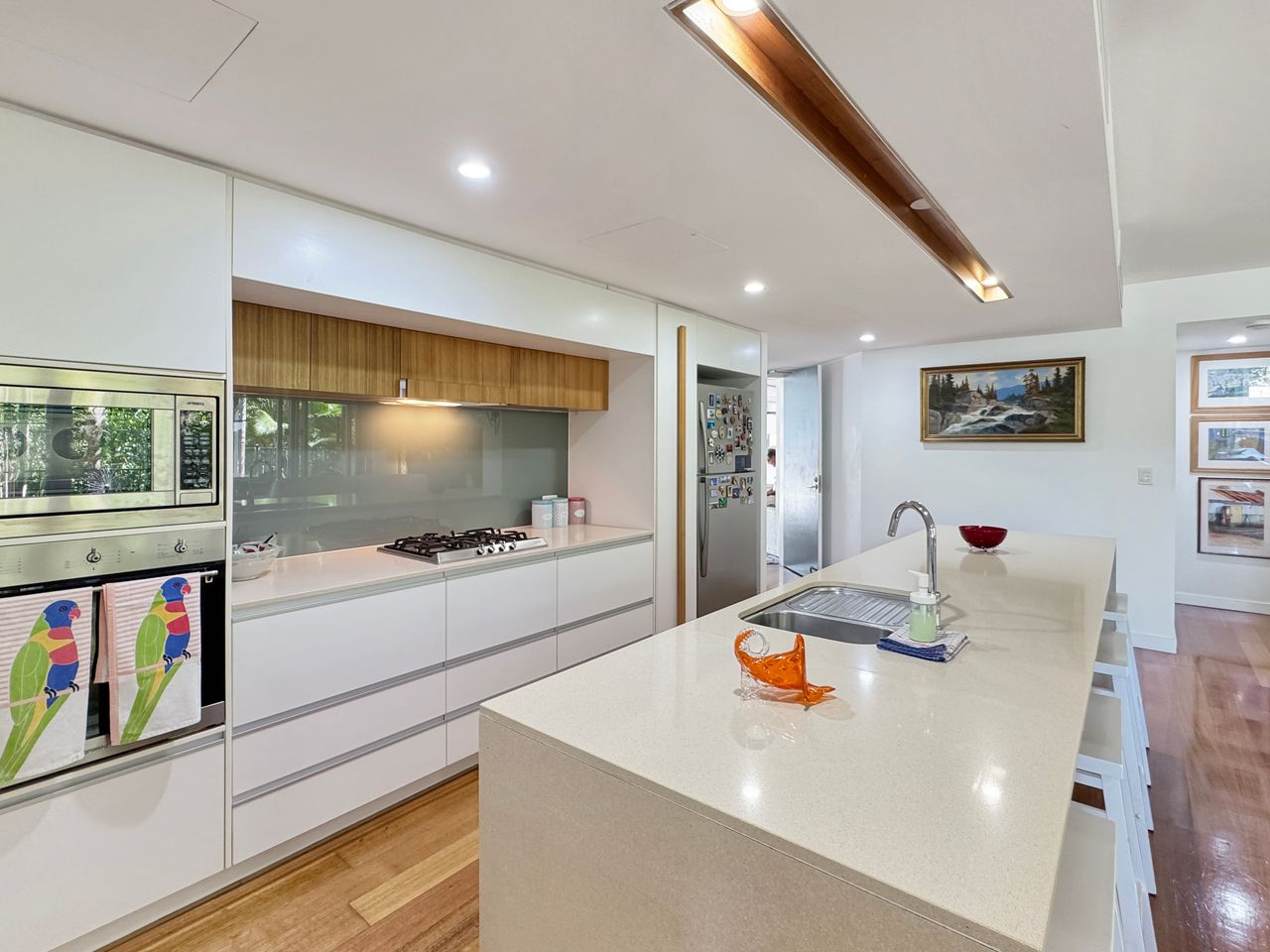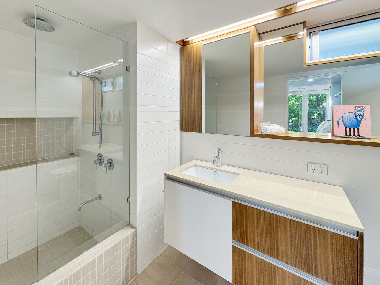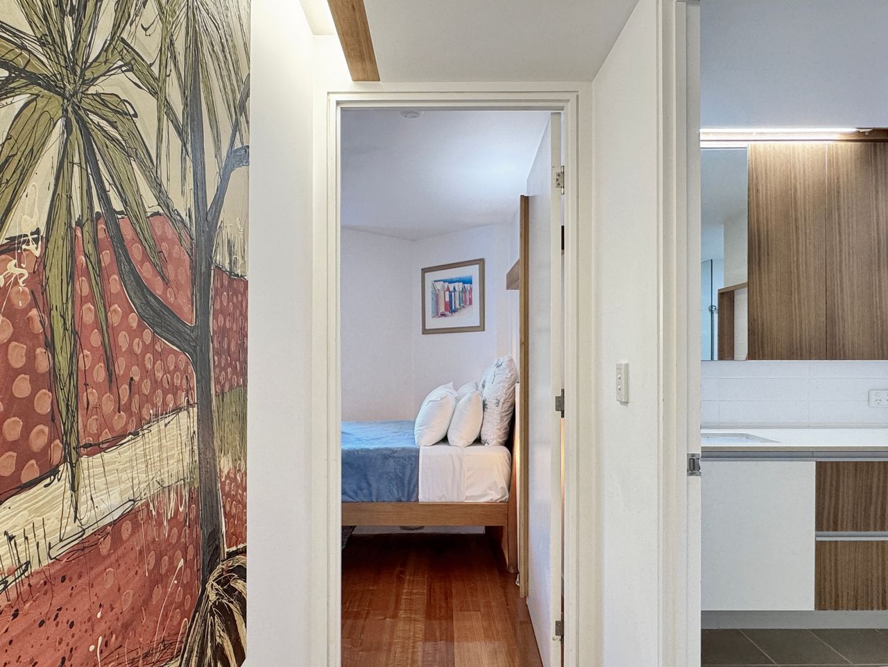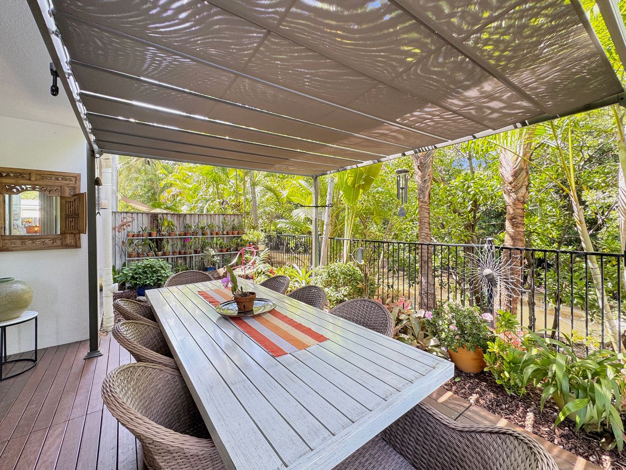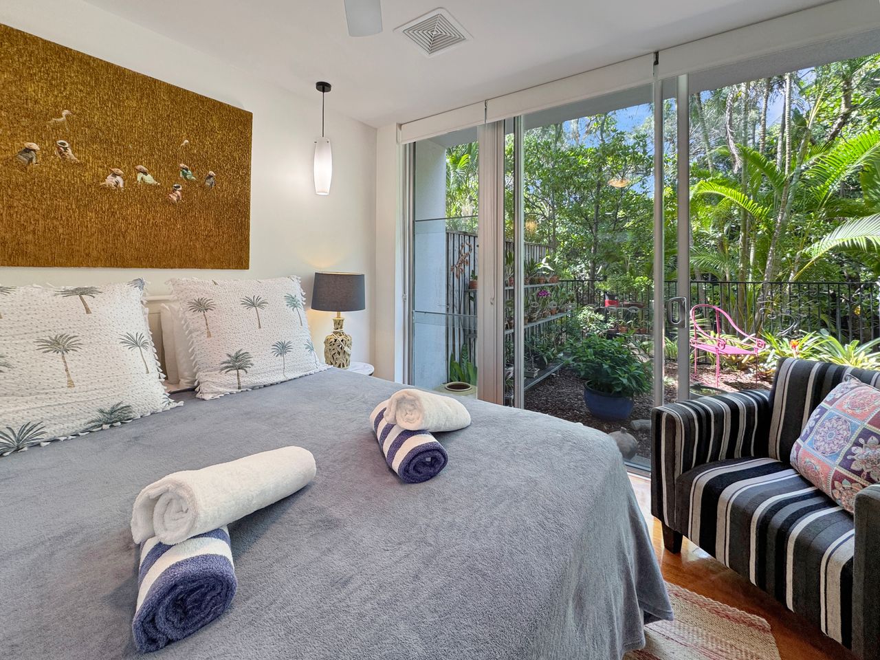 Apartment 2 is a ground-level retreat set back from the beachfront, offering added privacy and a peaceful outdoor garden area bordered by natural creek vegetation. It’s an ideal choice for couples or small groups seeking a quiet escape with all the benefits of this prime location. The apartment includes two comfortable queen bedrooms.