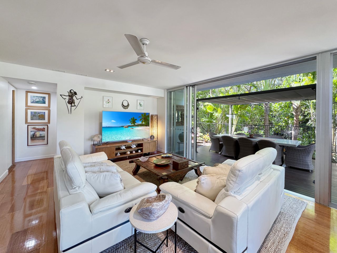 Designed for easy holiday living, this apartment includes a spacious open-plan living area, large outdoor deck, air-conditioning, and fully self-contained facilities—perfect for couples and friends looking to unwind in comfort.