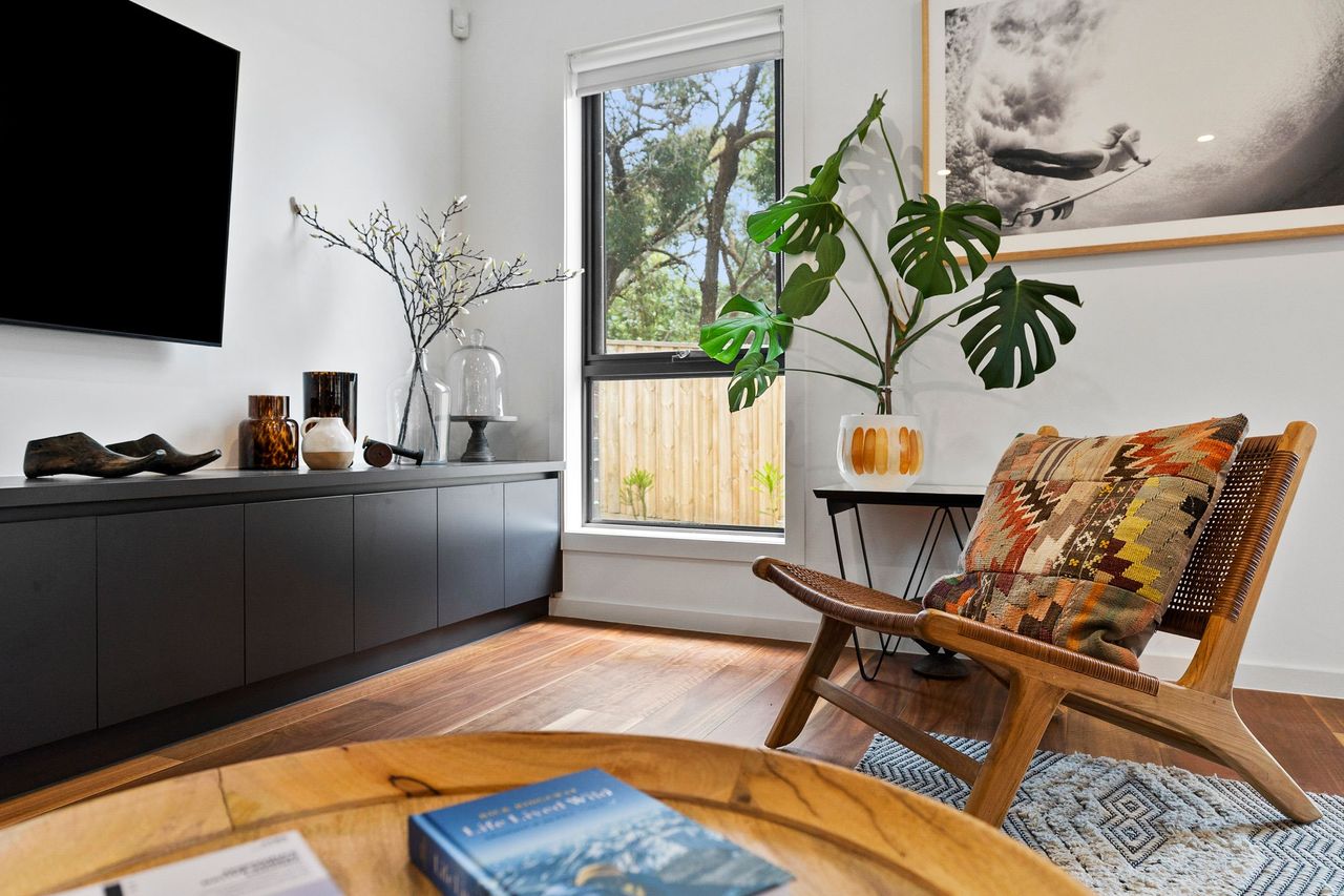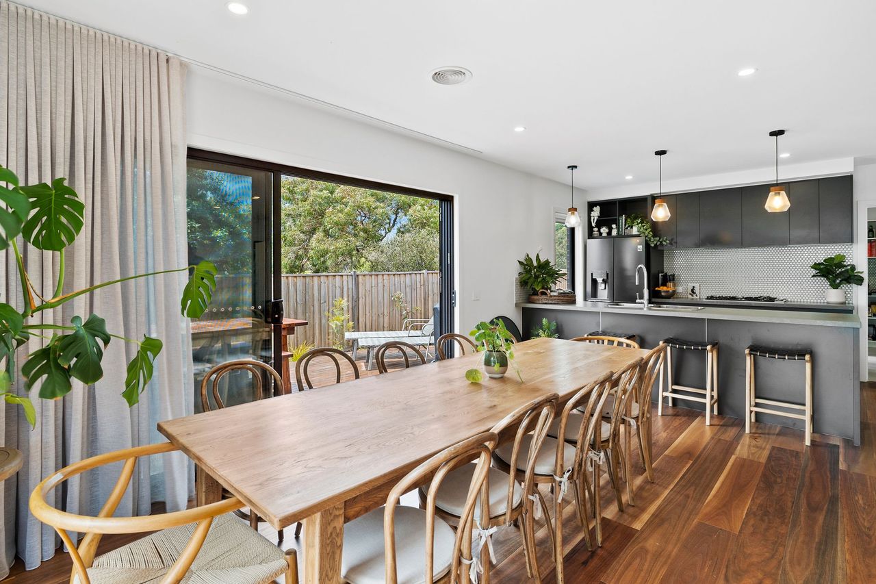 As you arrive, you’ll be greeted by a unique elevated deck surrounded by a garden. The deck has comfy lounge chairs and an outdoor dining area, perfect when you want to enjoy the morning or spend the afternoon watching sunsets. It’s great for a sunny brunch after a swim at the beach or hosting a BBQ to bond and socialise.