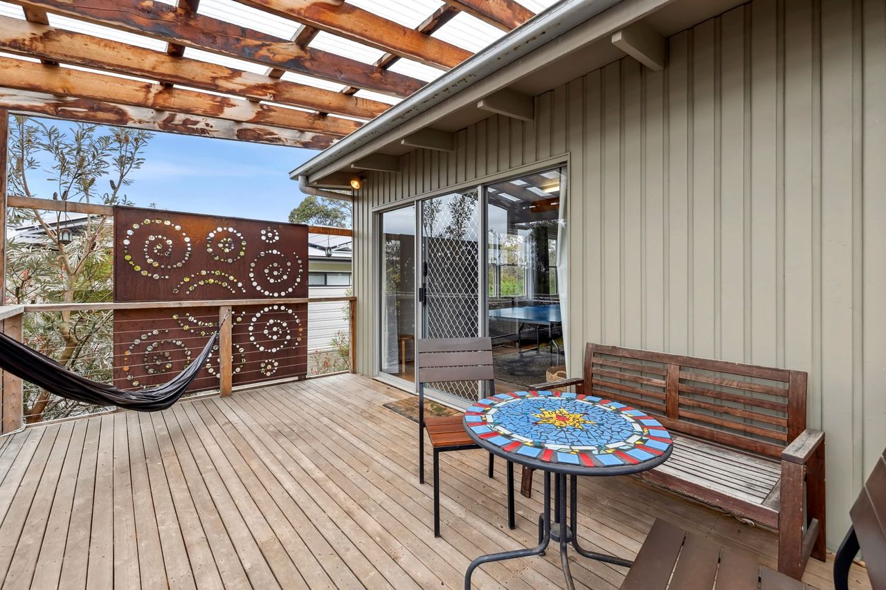 Set in a peaceful coastal setting, Moo-nah on Mawson invites you to slow down and enjoy the simple pleasures of seaside living. An upstairs deck with a hammock offers a quiet spot to relax, while the large main deck is surrounded by beautiful gardens and features outdoor furniture, a BBQ, a fire pit, and a tranquil water pond feature—ideal for gathering and unwinding.