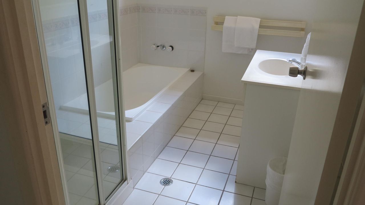 Bedroom 1: Queen bed and ensuite with shower and toilet