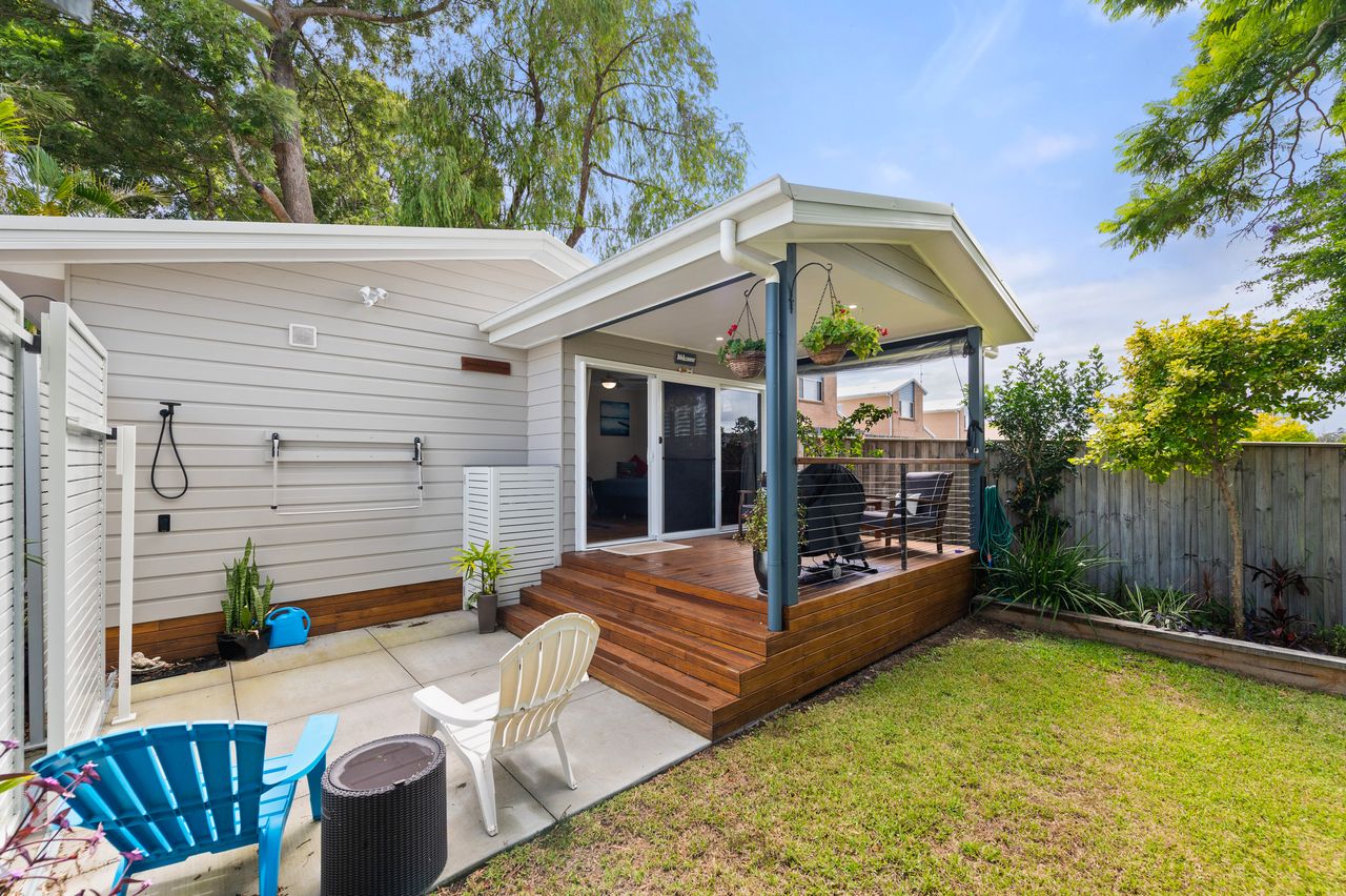 This brand new one-bedroom cottage is only 650m from Dutchmans Beach, where you can enjoy the natural beaches and waterways that Port Stephens is famous for. On this shared garden block, you are situated down the driveway and past the main house, near the Jacaranda tree. From your leafy and private deck overlooking the shared garden, you’ll feel like you are miles from everything – but you’re actually just a short walk to Nelson Bay shops, cafes and restaurants.