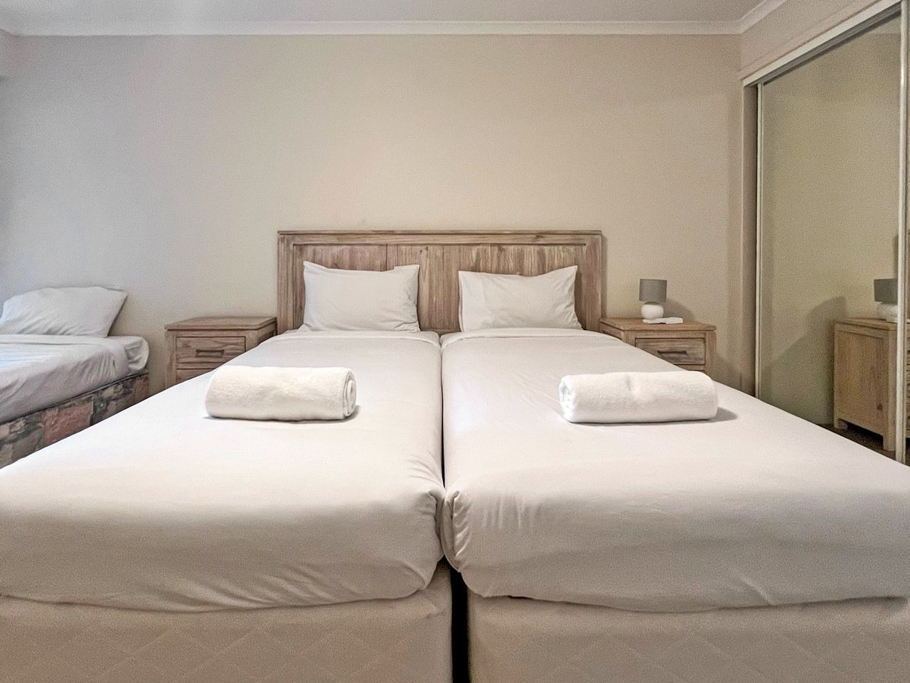 There are two bedrooms, both with king beds, air conditioning in the main bedroom, one bathroom with shower and spa bath and an internal laundry with a washer and dryer. Plus undercover secure parking for two small cars with lift access to the apartment. This apartment does not have access to the Nelson Towers pool.