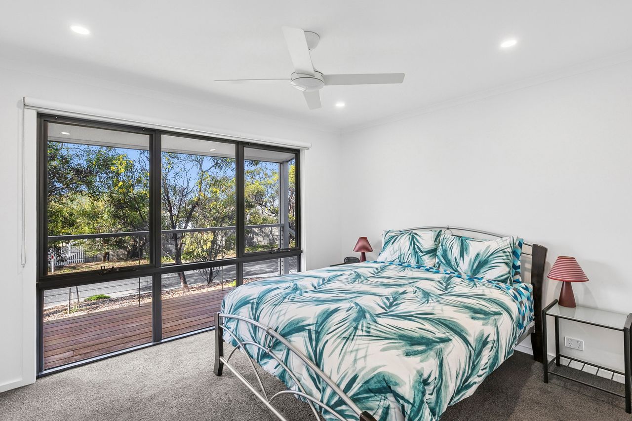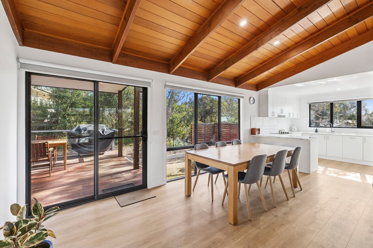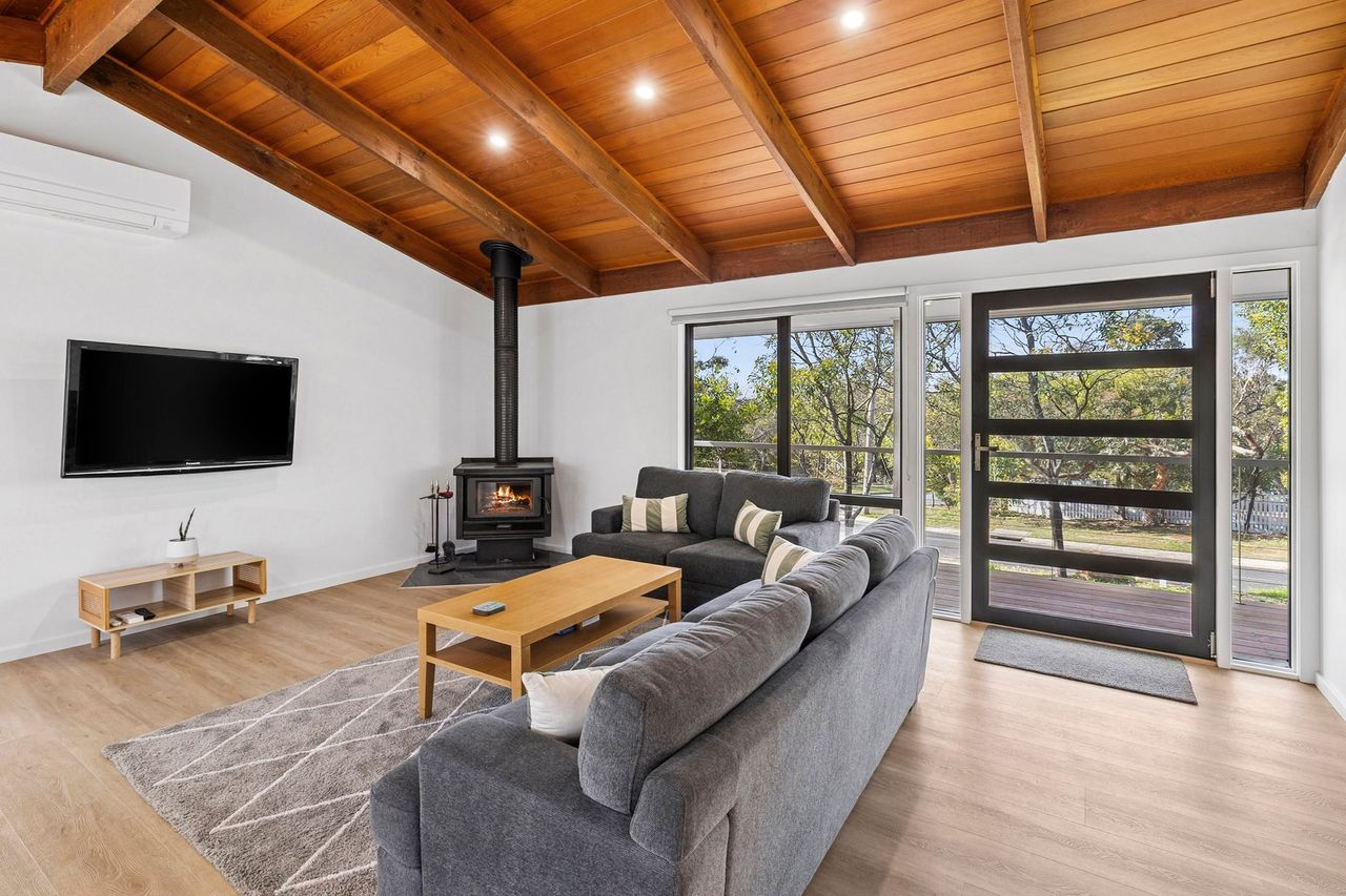 The home offers a bright open-plan living and dining area with soaring timber ceilings, a Smart TV, WiFi, and split-system air conditioning. The fully equipped kitchen makes self-catering easy, while large windows and sliding doors connect you seamlessly to the outdoors. Step outside to enjoy the furnished deck and gas BBQ, ideal for relaxed alfresco meals.