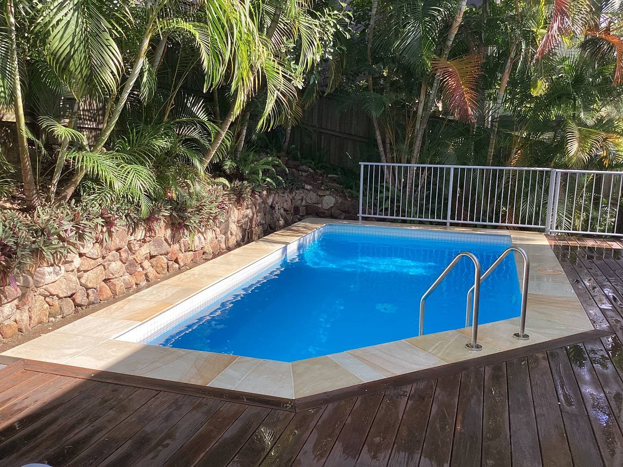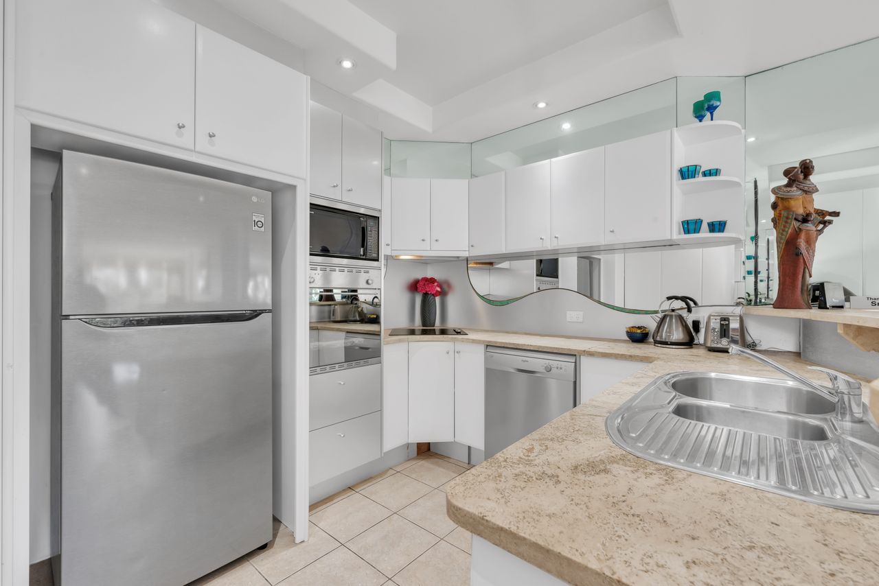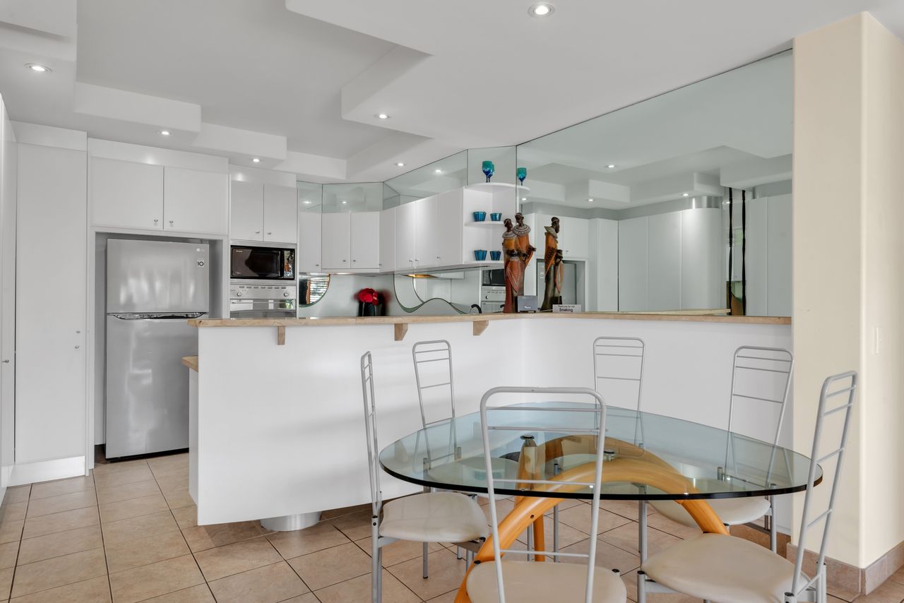 The Unit -This unit features stained wooden features including a beautifully molded kitchen, large painted and carved ceramic urns and modern artwork adorns the walls. The property features a small shaded and heated communal pool and undercover parking. All only a couple of hundred meters from Noosa’s main beach and Hastings Street, Noosa Heads. It is located North west facing so you can soak up the sun in winter and pull down the awnings for summer shade. There is a set of stairs up to the apartment, there is no lift.