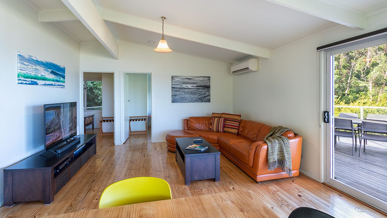 In the warmer months enjoy the salty sea breezes, the sound of the waves rolling in and the smell of the bush from the deck or soak up the views in air-conditioned comfort.