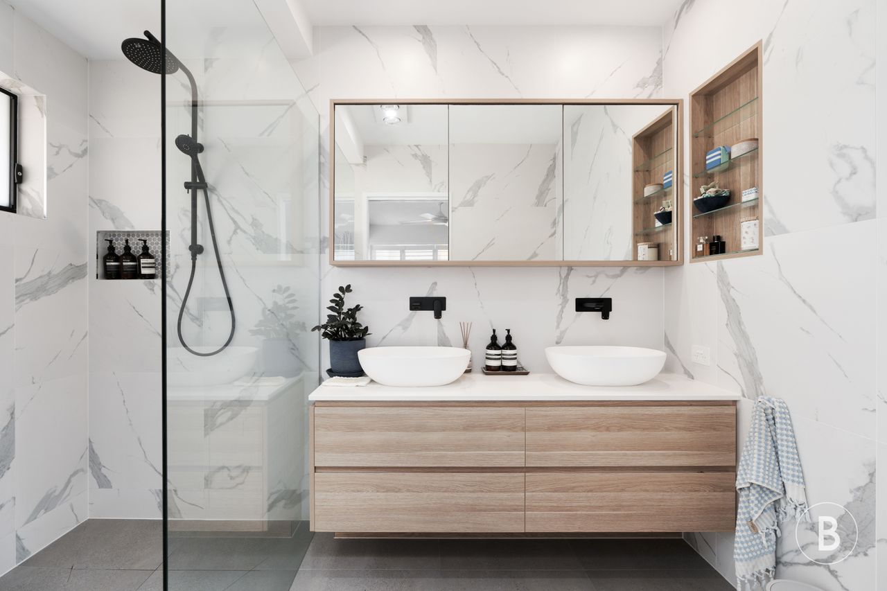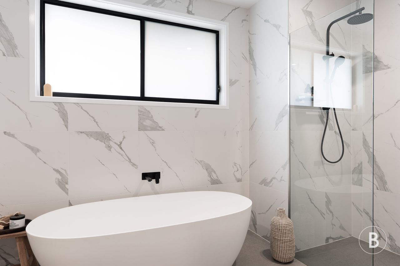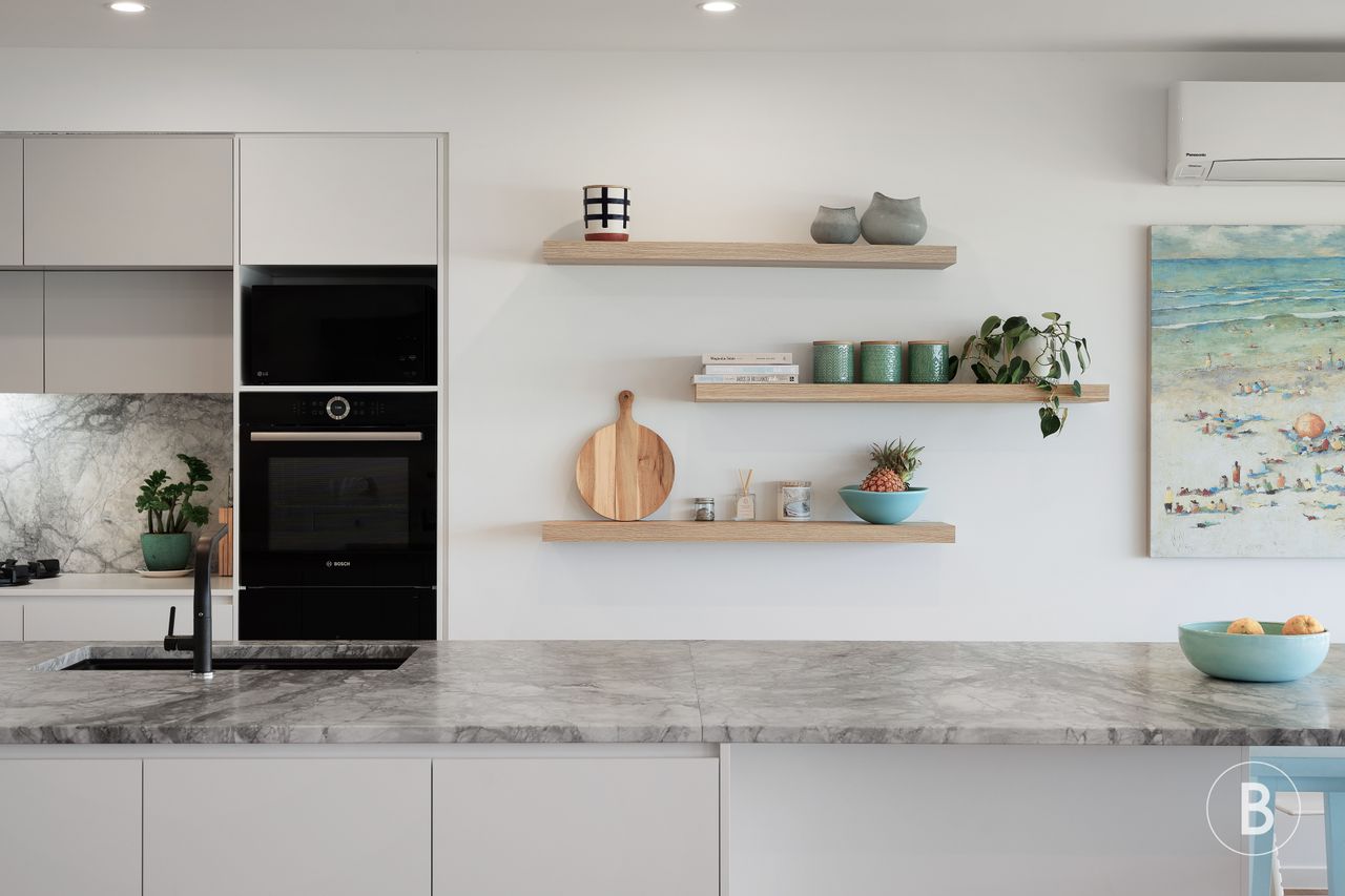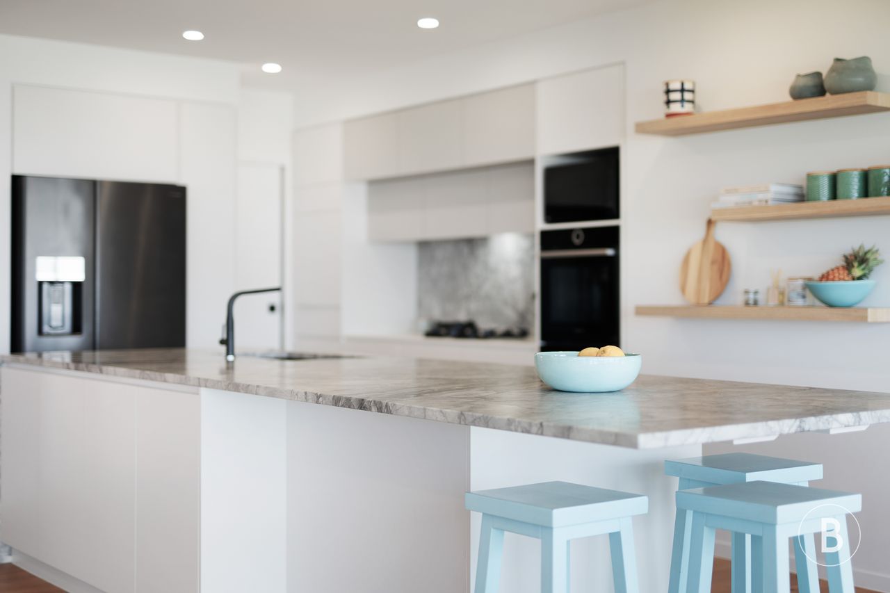 The open-plan layout seamlessly blends the living, dining & kitchen areas, creating a warm & inviting atmosphere on the top floor. The home is styled beautifully with stunning decor & finishes.