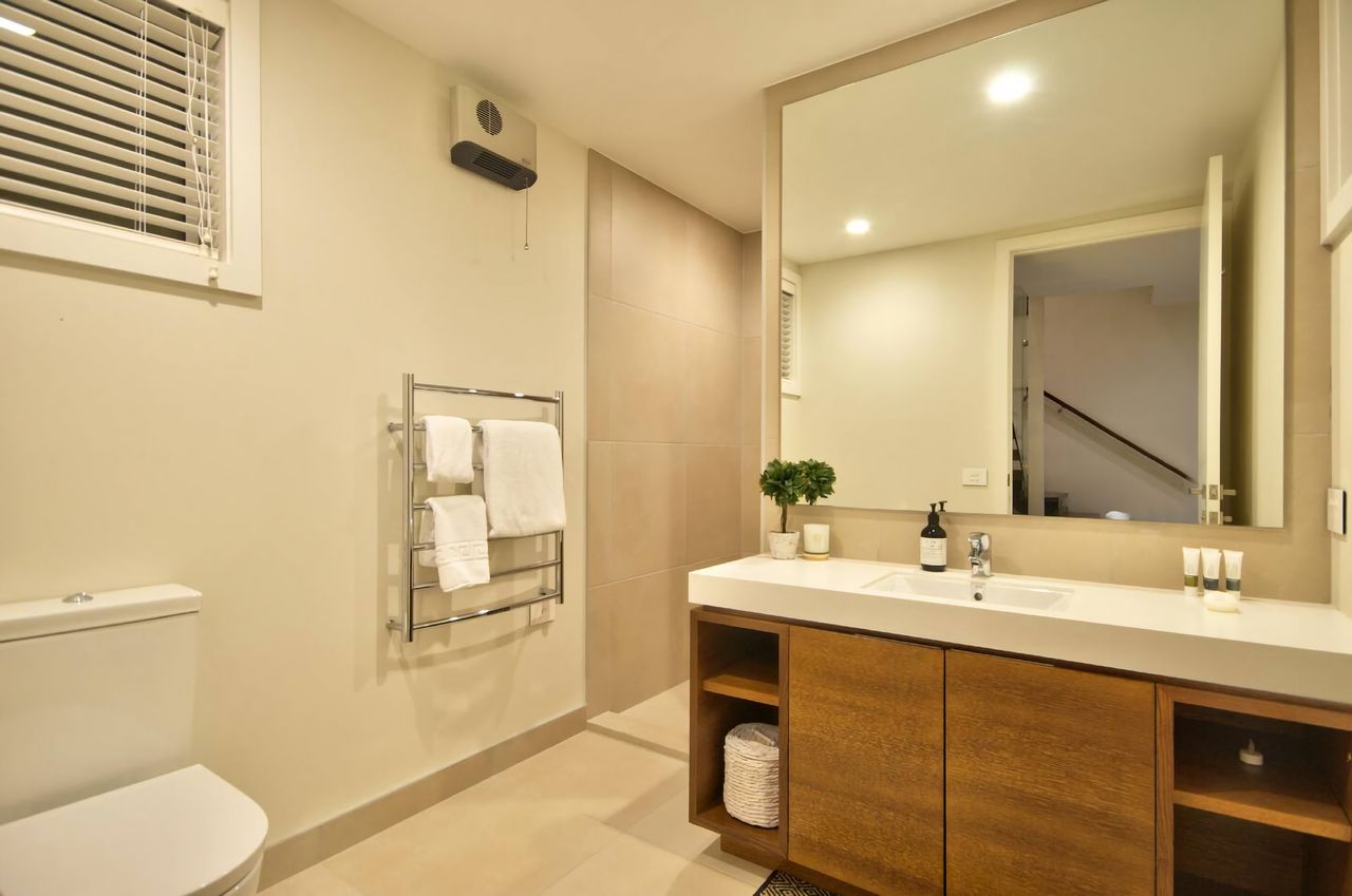 The heart of the home is an expansive living and dining area where the designer kitchen allows for effortless entertaining. This opulent space opens out to a large balcony with views you won’t believe. The outdoor courtyard with gas fire is a great place to relax with a coffee in the morning or a wine in the evening.