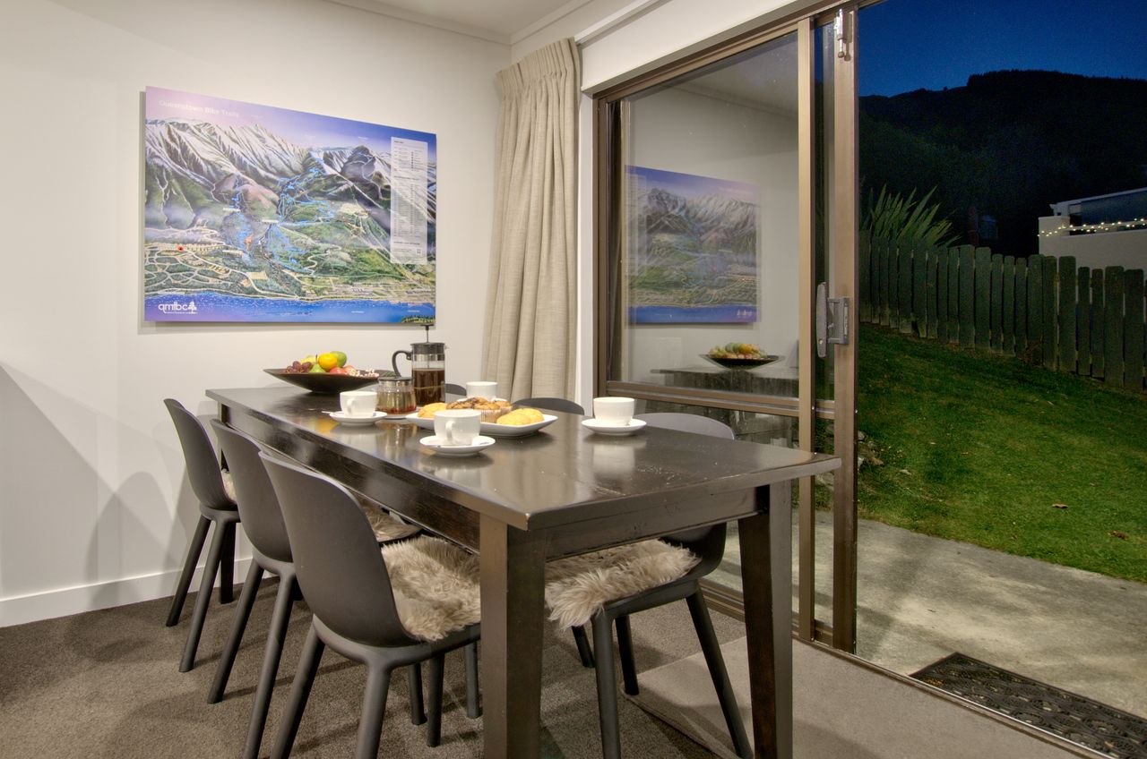 Just minutes from town yet peaceful and private. No car? No problem. The bus stop is less than 100m away with services every 15 minutes, connecting you to town and ski fields including Coronet Peak and The Remarkables.