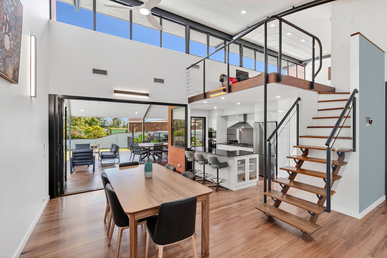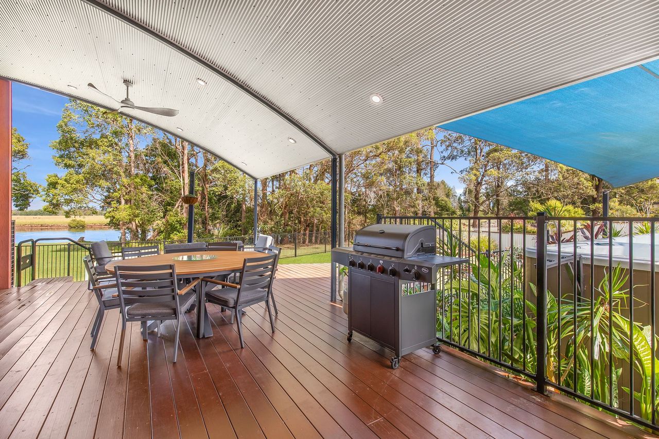 High ceilings and a solar-passive design flood the home with natural light and cooling river breezes. Ideally located just 2.5km from Urunga’s town centre, boat ramp, boardwalk, cafes, and nearby pristine beaches, this exceptional property delivers a relaxed yet luxurious riverside holiday, with easy access to Bellingen and Coffs Harbour.