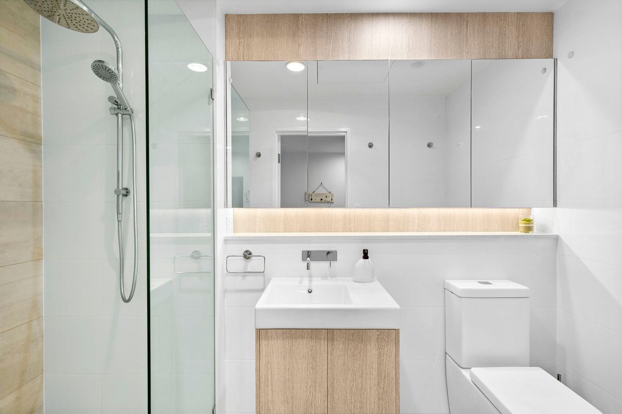 The separate bathroom is elegantly styled with neutral tones, complementing the modern aesthetic throughout the home.