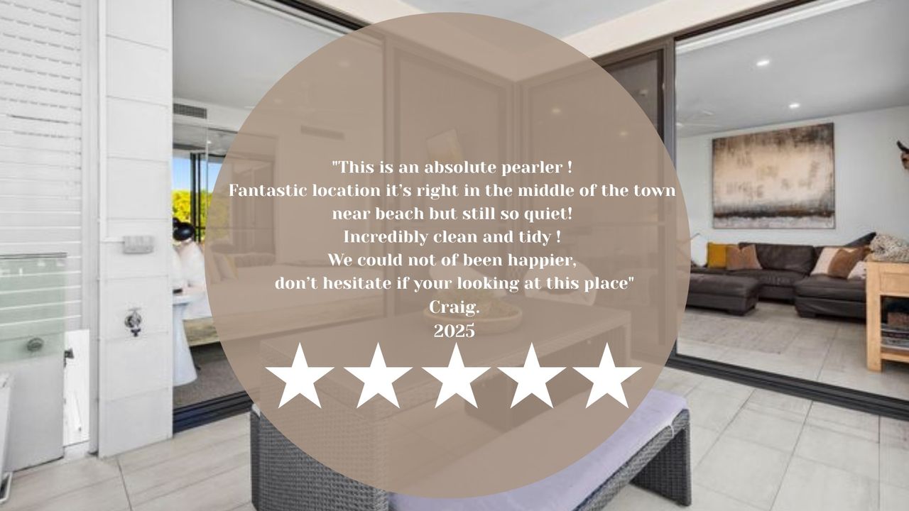 Rockpools 3 offers the perfect blend of coastal relaxation and contemporary living. The apartment features two beautifully appointed bedrooms, both with plush carpeting and built-in wardrobes, comfortably sleeping up to 5 guests.