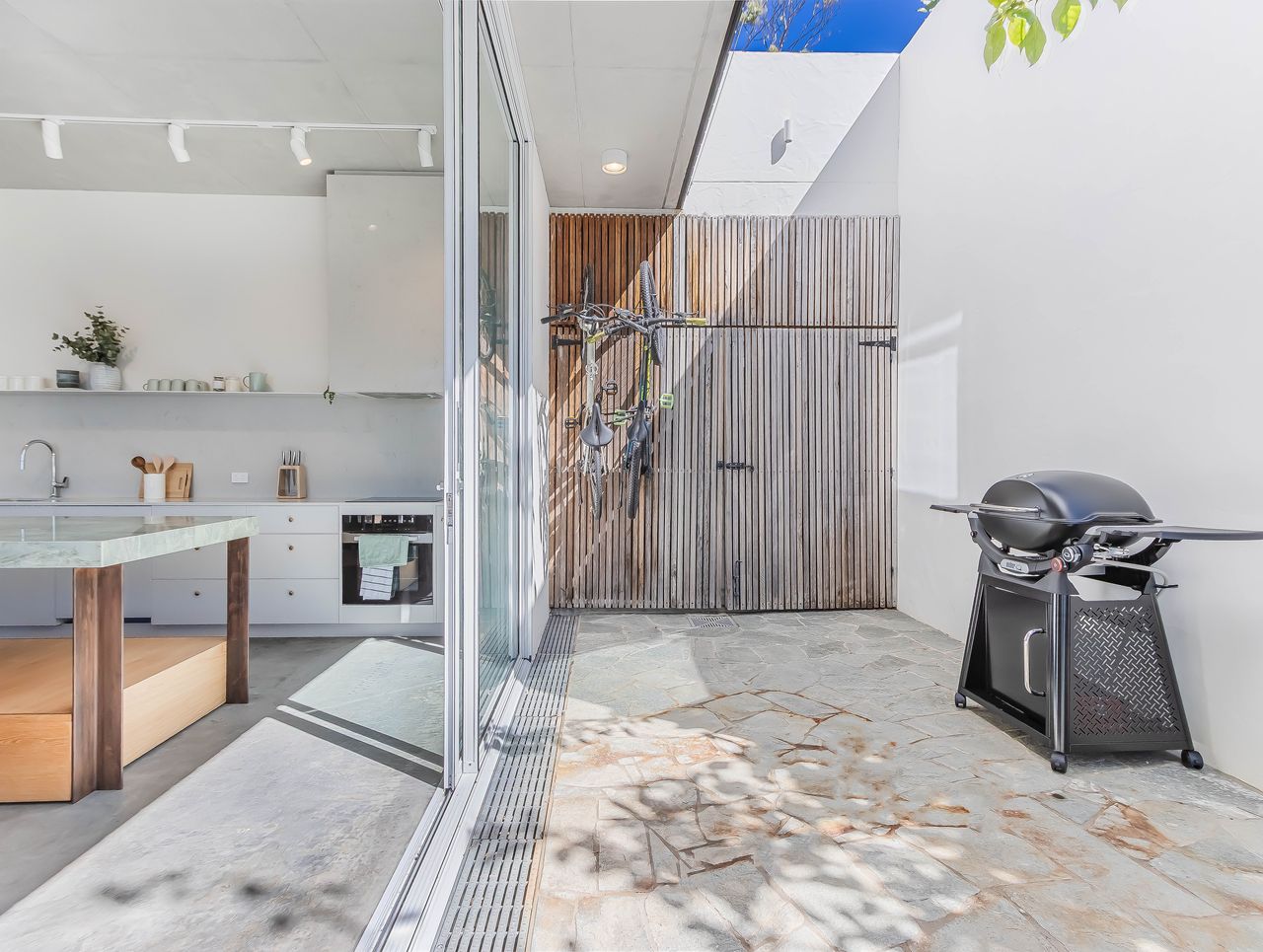 Outdoor space with BBQ area and courtyard.