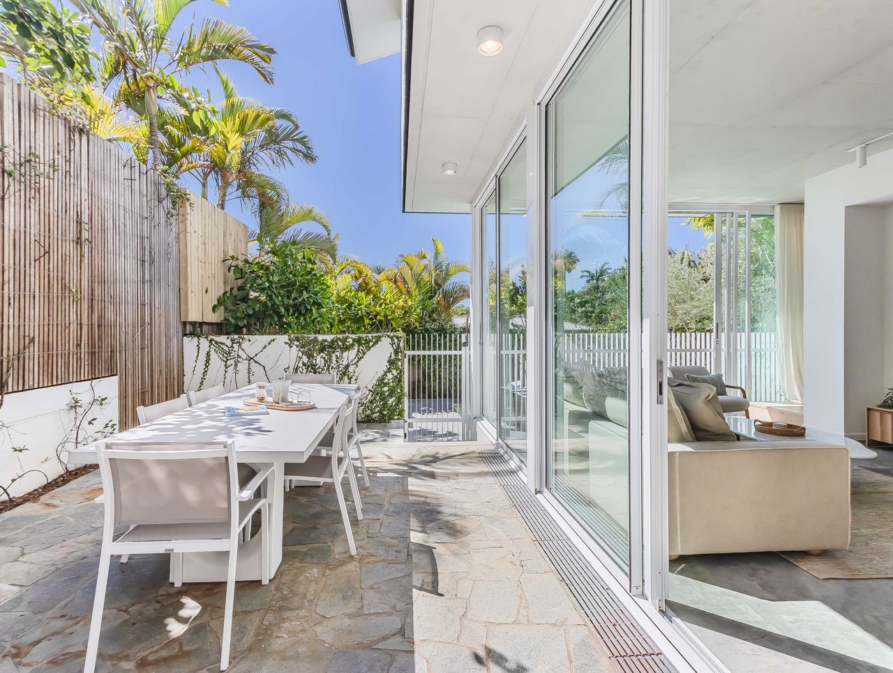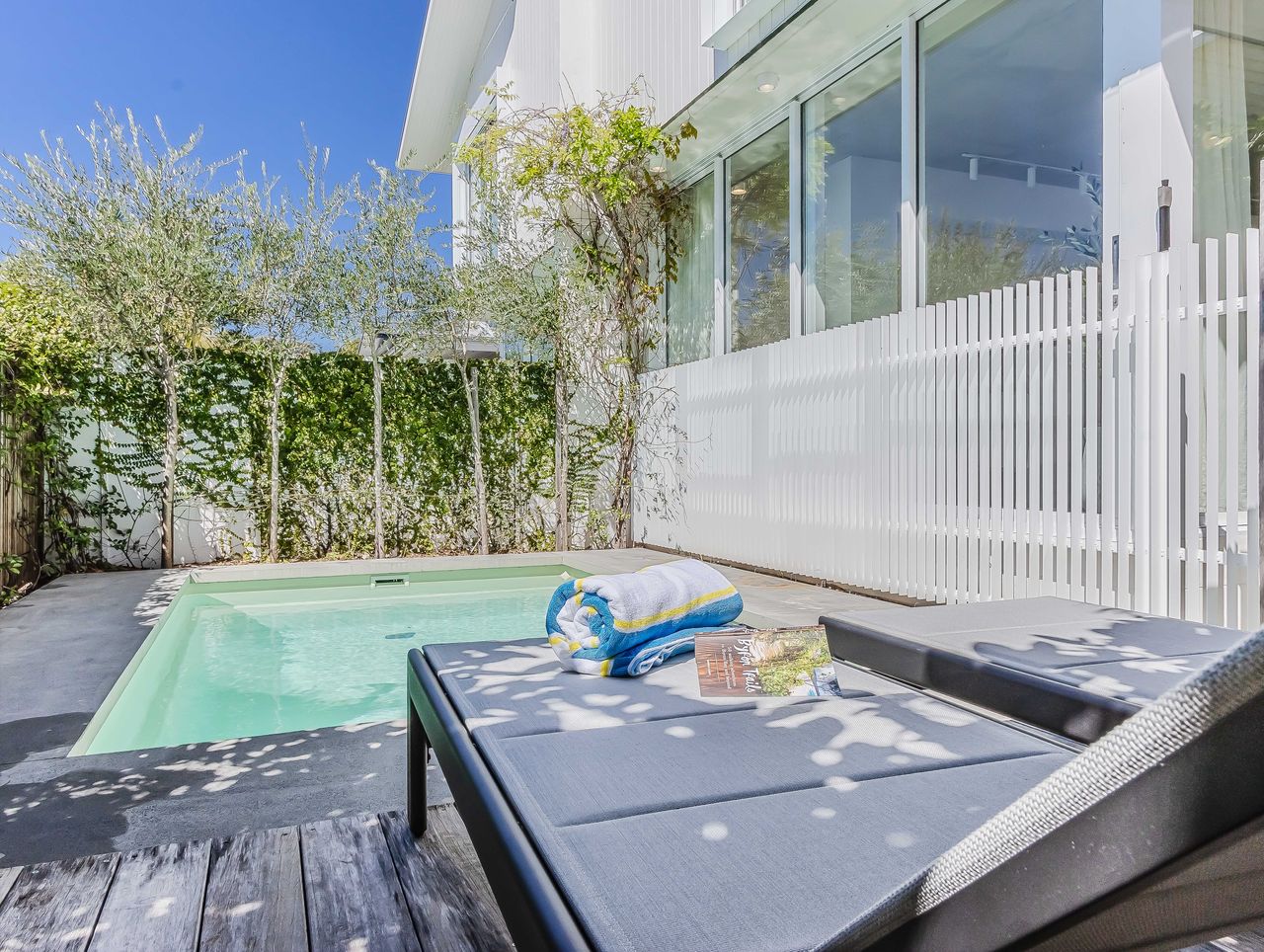 Nestled in the heart of Byron Bay, Salt & Stone Luxe Hideaway is a private retreat of effortless style and tranquility. This architecturally designed escape strikes the perfect balance of coastal charm and modern luxury, making it an ideal base for your Byron adventure. Perfectly positioned on the coveted Byron Bay Golden Grid, you’ll be just moments from the beach, boutique shopping, and buzzing café culture. Being on the Golden Grid means you can wander to Main Beach in minutes, stroll to iconic eateries, or simply soak up Byron’s vibrant lifestyle right from your doorstep. Soak up the sunshine beside the sparkling pool or gather for alfresco dining in the leafy courtyard. The outdoor areas blend seamlessly with the interiors, creating an easy, breezy holiday atmosphere from the moment you arrive.