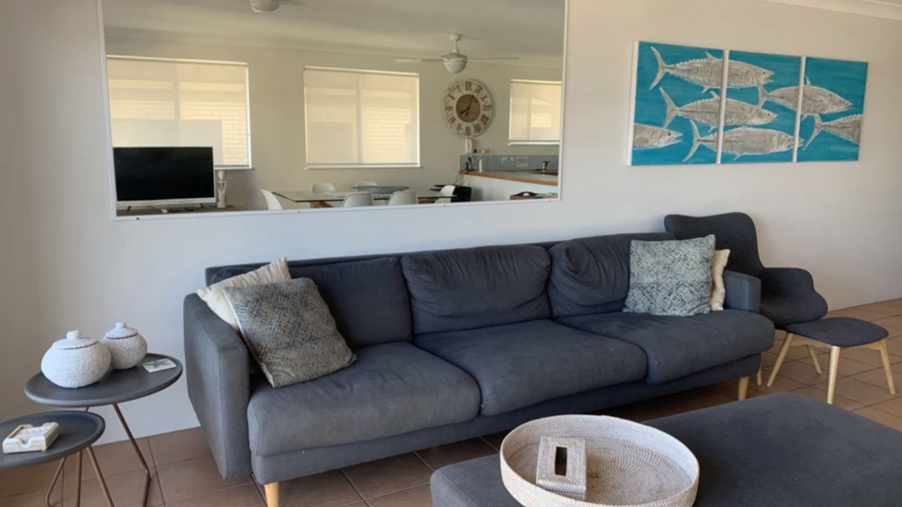 Unit 5 has been modernly furnished with style & comfort in mind, will sleep up to 5 guests in a King & trio bunk bed (with a double on the bottom and single on top). The master bedroom has an ensuite and the main bathroom has a shower over a full bath. Key features of the unit include FREE Wi-Fi, Smart TV, DVD, air conditioning the lounge and both bedrooms, dishwasher and flyscreens throughout. There are also 2 x balconies. For the warmer months there are ceiling fans in the lounge room and main bedroom, and a pedestal fan in bedroom 2.