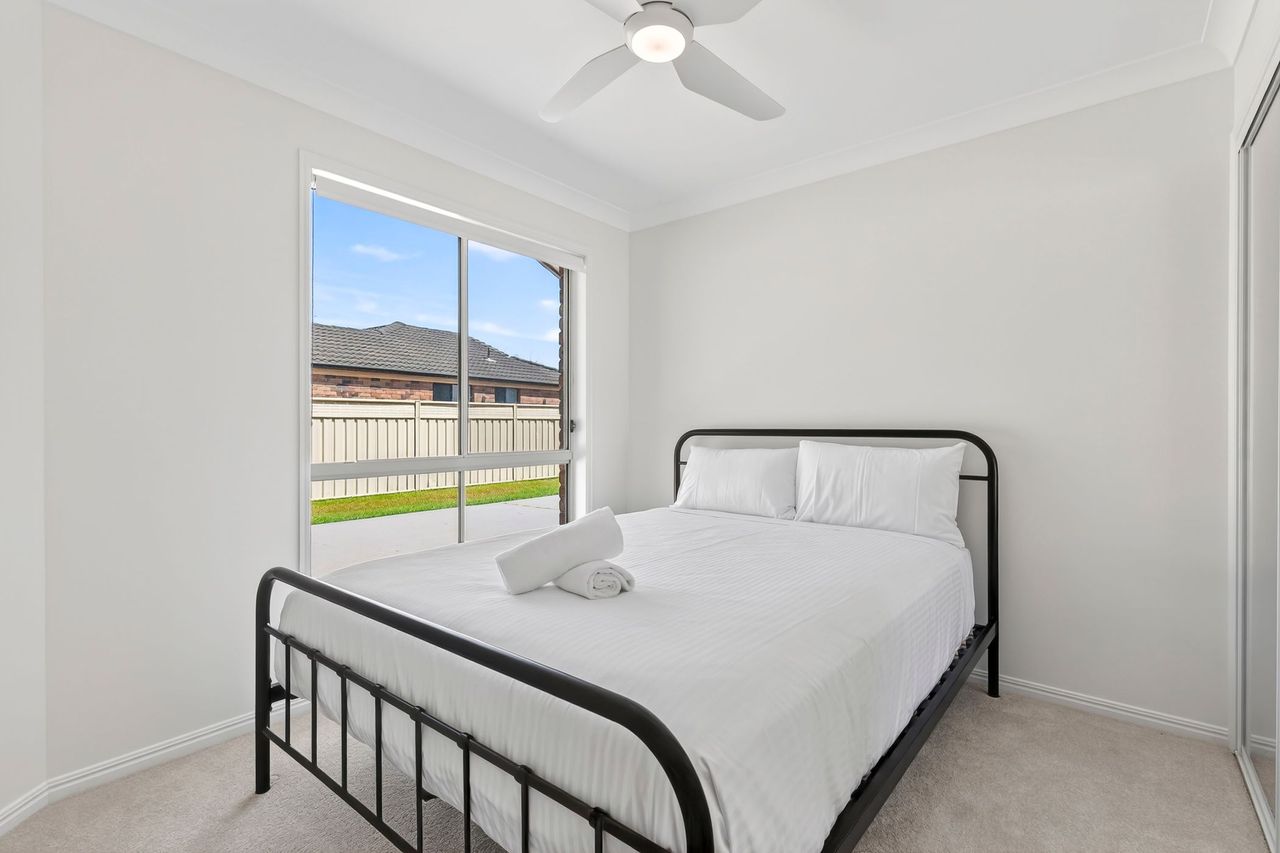Inside, the home features four comfortable bedrooms, including a master with ensuite, walk-in robe, and study desk. The fully equipped kitchen offers electric cooking and a dishwasher, flowing into spacious living and dining areas with a Smart TV. Split-system air conditioning and ceiling fans throughout ensure year-round comfort, and an internal laundry adds convenience for longer stays.