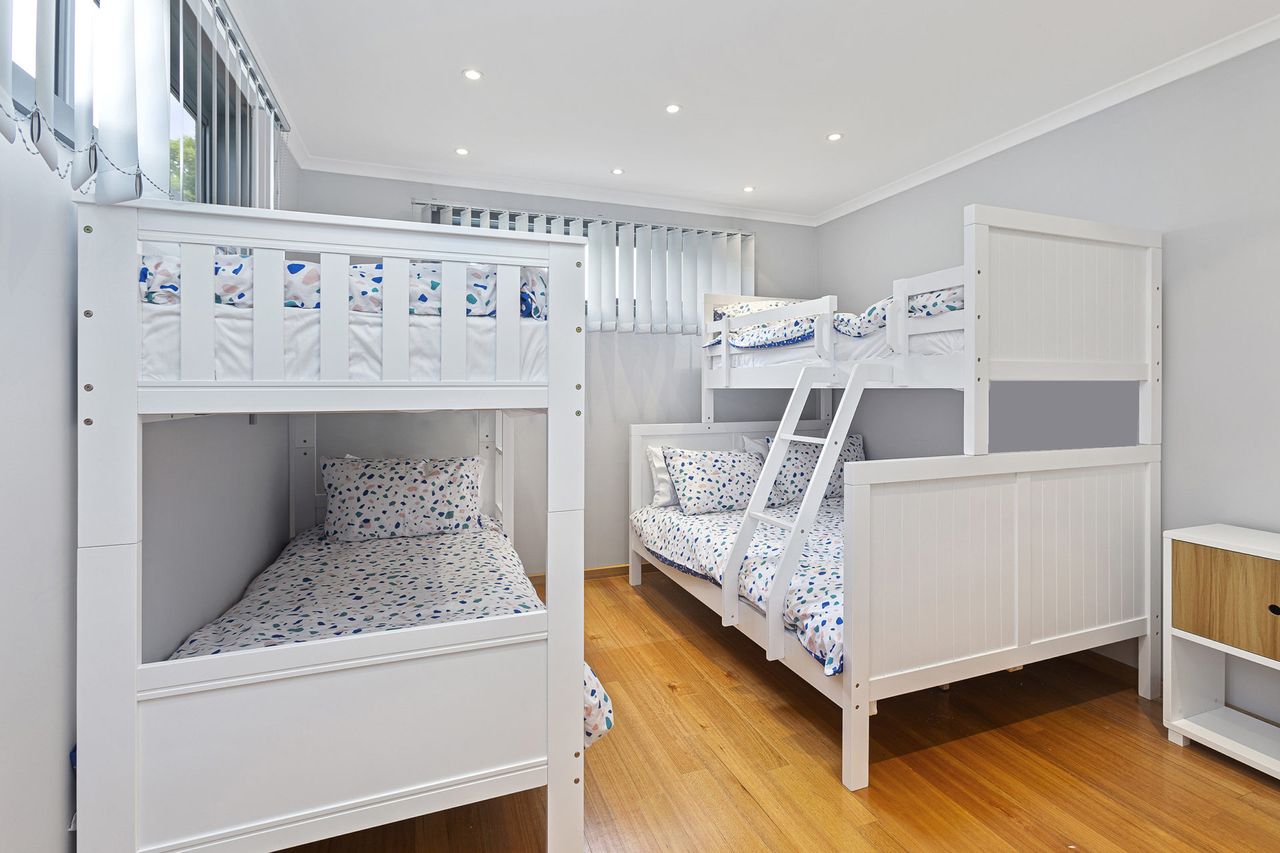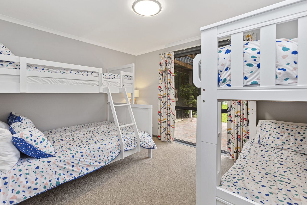 On the lower level are 3 generous bedrooms. The master bedroom with king, ensuite & walk-in robes, 2nd bedroom with Queen, 3rd bedroom with 1 tri-bunk & 2nd bunk. A family bathroom with bath, separate shower & toilet. Laundry with washing machine & separate shower.