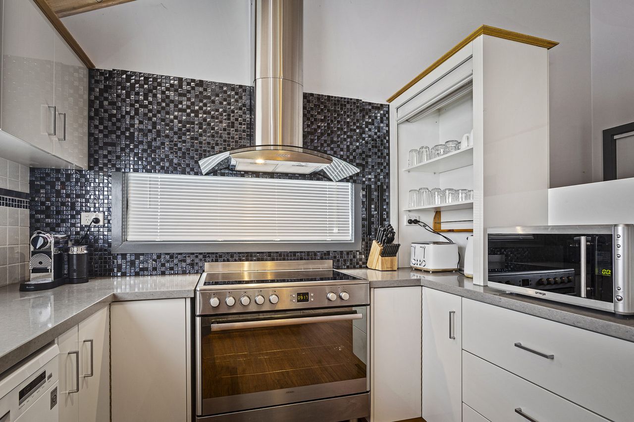 The kitchen is fully equipped for catering to large numbers, with electric oven, induction cooktop, dishwasher, large fridge/freezer, microwave, pod coffee machine, all complemented by an extensive outdoor, undercover entertainment zone with BBQ & utensils and outdoor gas heater, overlooking the garden with views to the hills.