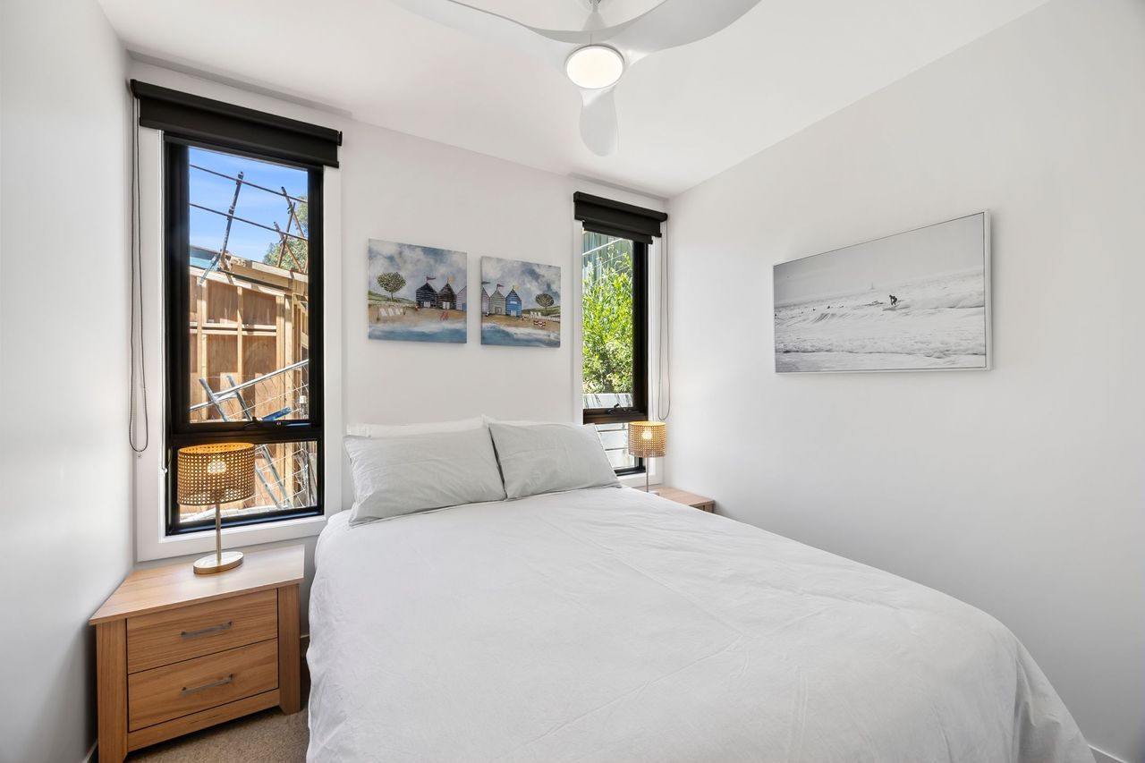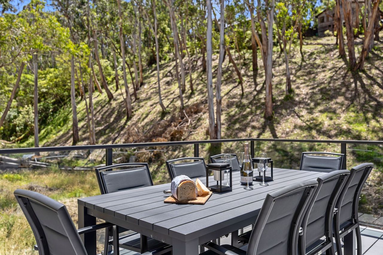 Step inside to an open plan living, dining, and kitchen area that invites you to unwind after a day by the sea. With modern furnishings and all the essentials for a stress-free stay, you’ll feel right at home. Slide open the doors, breathe in the fresh coastal air, and enjoy alfresco dining on the deck—whether it’s a BBQ under the stars or a morning coffee as the bushland wakes around you.