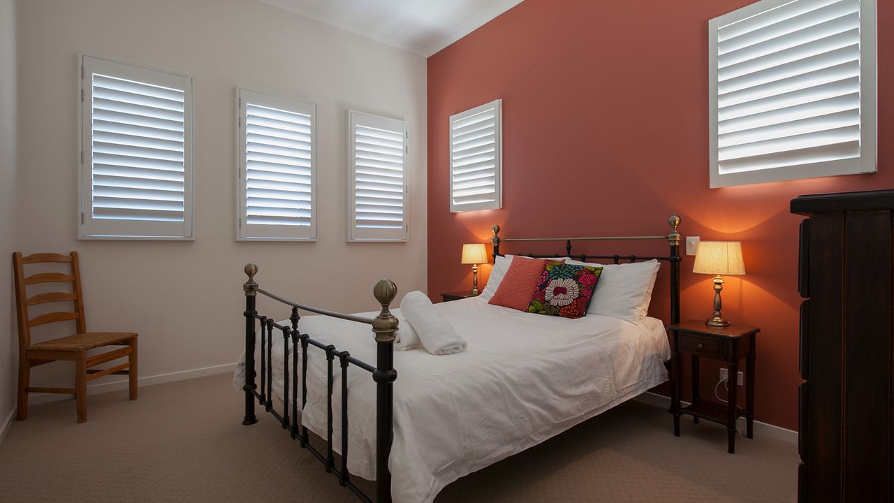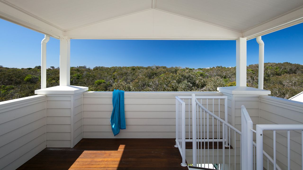 Master Bedroom 1 – Queen bed and large ensuite with spa bath shower and toilet, and a private deck overlooking the dune reserve