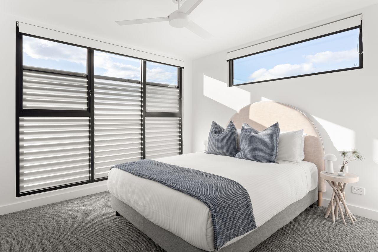 Bedroom 3: Queen bed, heating, cooling, built-in robe