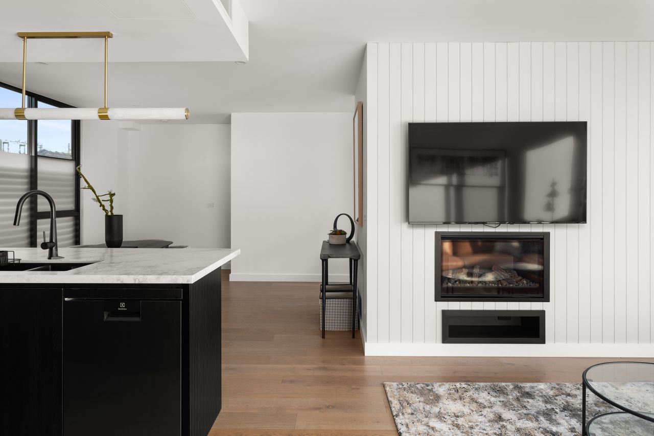 You’ll find two spacious living areas, a well-equipped kitchen, a balcony, and a ground-level courtyard perfect for outdoor entertaining. The dining space can accommodate six people. There is ducted cooling in the dining and living rooms, along with a gas fireplace in the upstairs living room. The downstairs living room has split-system heating and cooling, and each bedroom has its own split-system unit with heating and cooling.