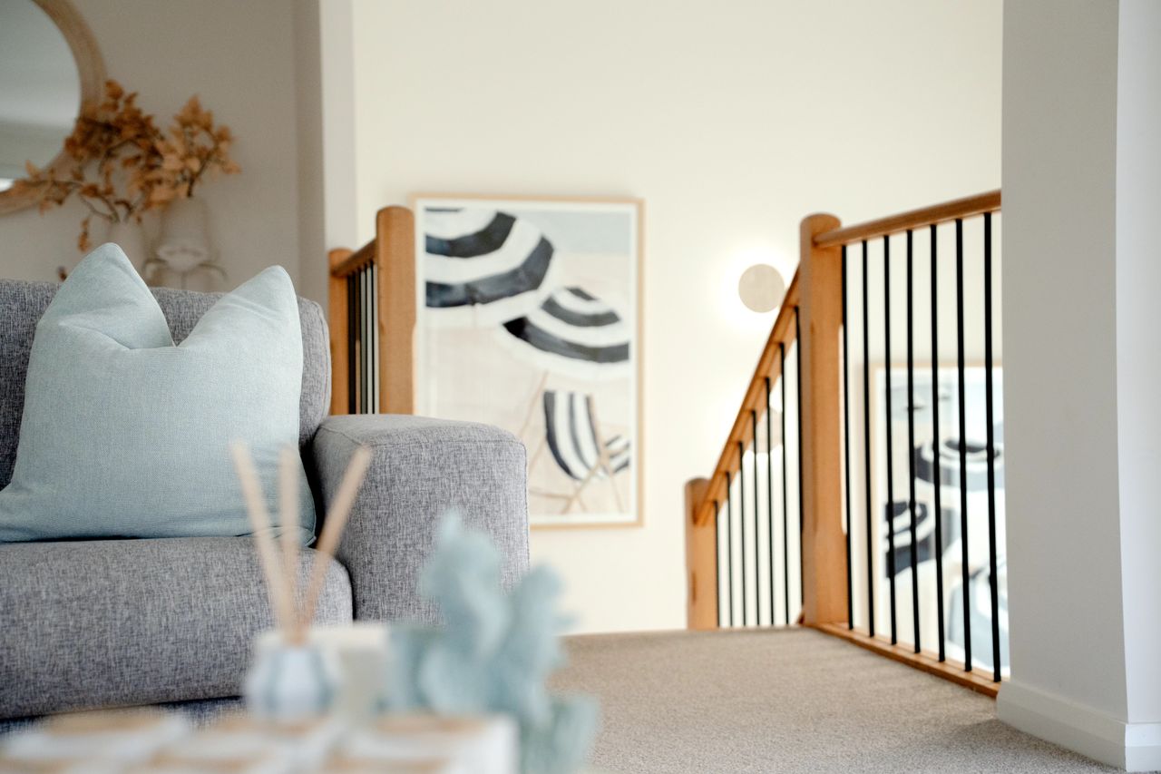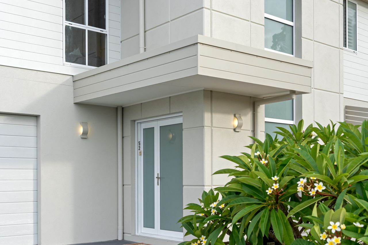 The House – You will not be disappointed when staying at this beautifully designed and appointed home. From the state of the art kitchen space to the impeccable bathrooms, offering plenty of room for the whole family. The property features a spacious living & dining area that joins the kitchen on the first floor, combining to provide a large open plan space that leads to a private undercover balcony with tasteful outdoor furnishings. From the balcony you can enjoy the views of the water and beyond to the mountains in the distance. The house is fitted with down lights and ducted air conditioning throughout. The sitting area is carpeted with a modern lounge suite, flat screen TV and a study zone. The modern fully equipped kitchen comes fitted with wall oven, gas stove top, microwave, fridge/freezer and dishwasher plus bar stools at the kitchen bench. The dining area provides a glass table and stylish bucket chairs. Continuing on the first floor is the main bathroom with a free standing bath, glass shower, double vanity with the toilet located separately. The laundry is next door to the bathroom which then leads out to an open deck which houses the BBQ and a clothes line.