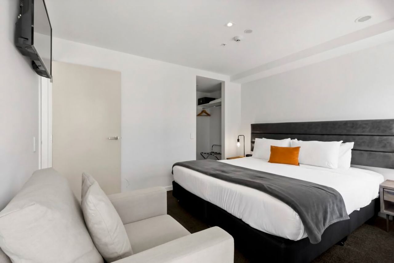 Hotel Parc Residence Building Open plan living area Fully equipped kitchen and dinning area Master Bedroom with balcony access Ensuite Twin Room (can be made up as a king on request) Shared bathroom Located near the Shotover River Living Room Entrance/Kitchen Master Bedroom with TV Balcony Entrance to Parc Residence Balcony with rural outlook Mountain Views River track nearby Washer/dryer combo Mountain Surrounds