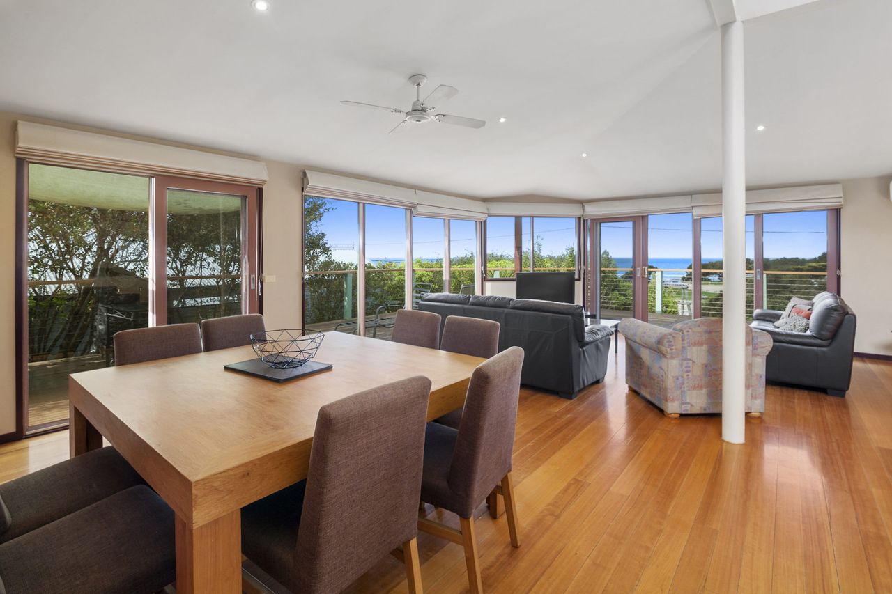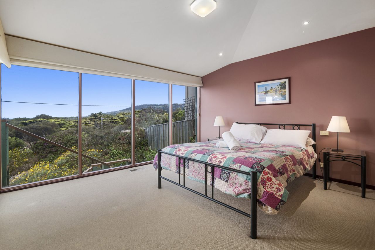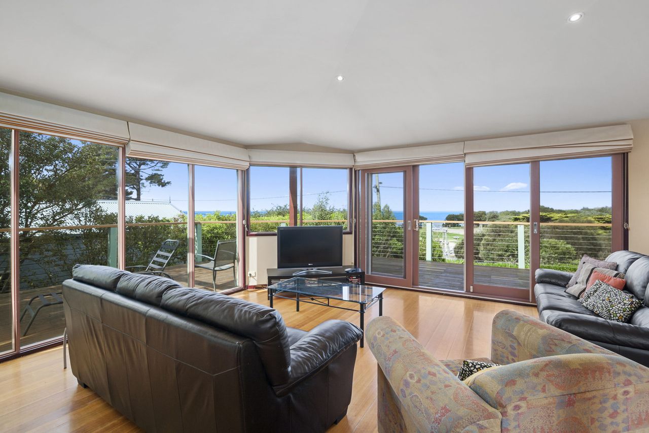 Modern architecturally designed four bedroom quality house. This is one of Lorne’s best locations. With spectacular views from the wide surrounding deck and spacious living/dining area and master bedroom you’ll feel like you’re staying on the beach! This property is popular for the views, comfort and close proximity to everything. Now featuring Wifi, Netflix and more.