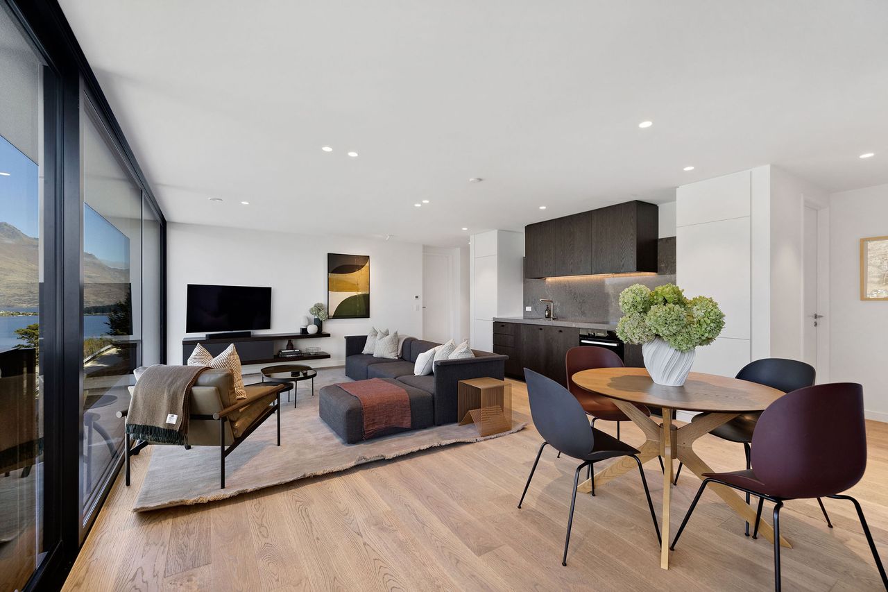 Escape to The Bunker Charlie C, a sleek and stylish top-floor apartment perched high above Lake Whakatipu, offering a front-row seat to the dramatic beauty of The Remarkables. Designed for relaxation and comfort, this alpine retreat blends modern luxury with the warm ambience of a mountain retreat – perfect after a day of adventure or lakeside leisure.