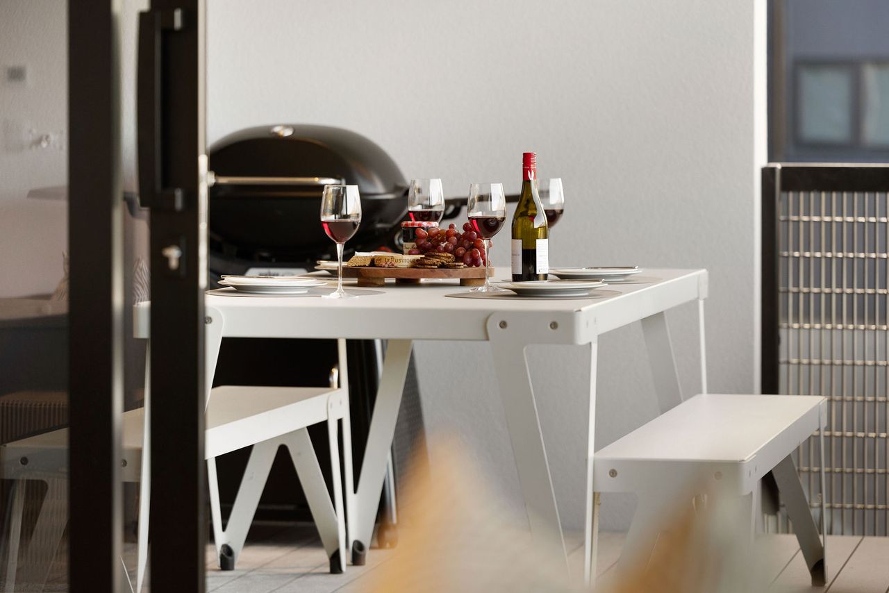 Please note this is the upper-floor apartment, accessed via stairs from the rooftop car park. Please get in touch with us if you would like to book all three apartments for larger groups.