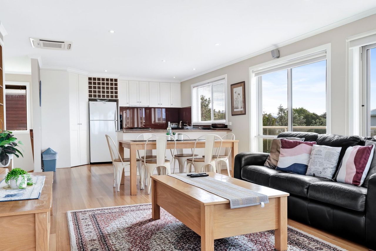 Enjoy a fully equipped kitchen with dishwasher, oven and microwave, flowing into an open-plan living area ideal for families or groups. Unwind with the big-screen TV, or step outside to relax on the porch and enjoy the coastal atmosphere.