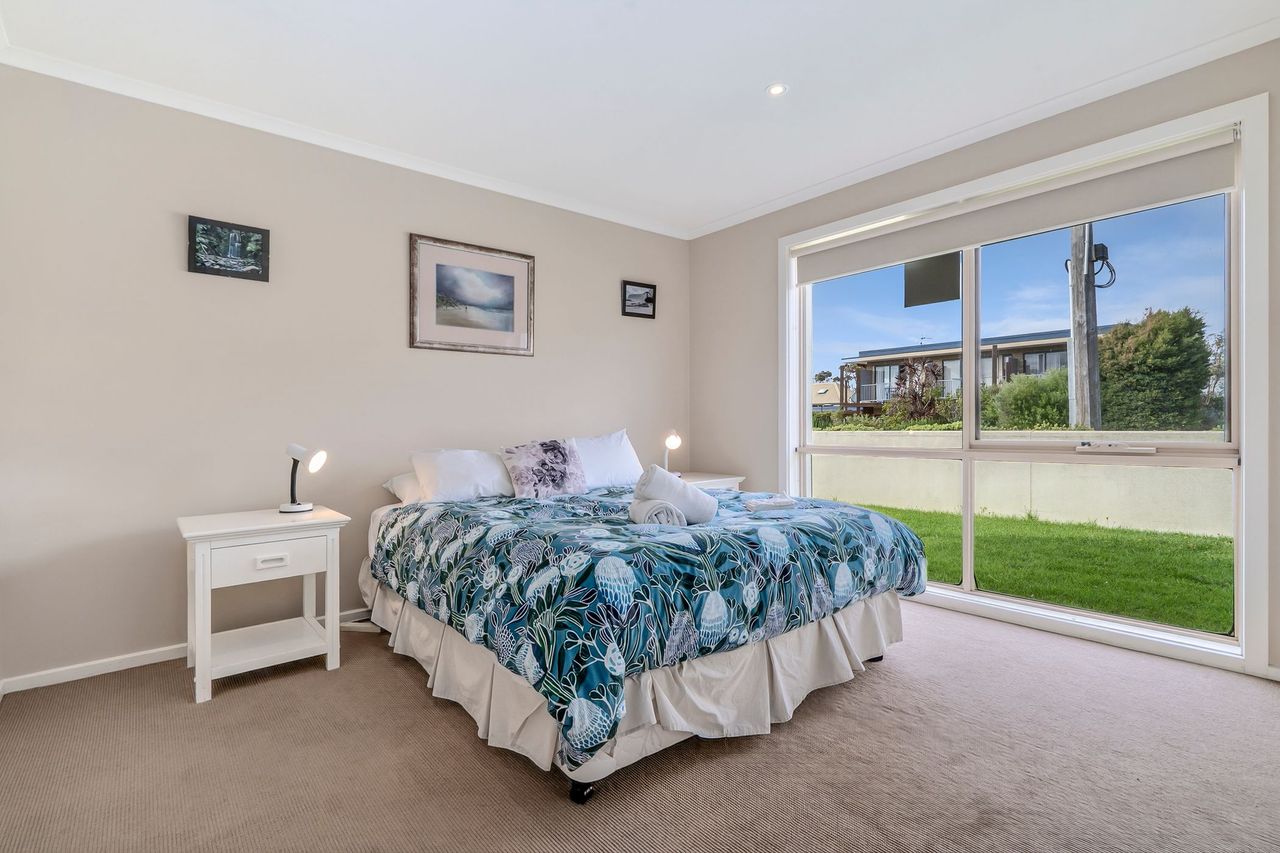 The home features three comfortable bedrooms sleeping up to six guests, including a generous master bedroom with a private ensuite and spa bath. Quality linens are provided, ensuring a restful stay after a day exploring the coast.