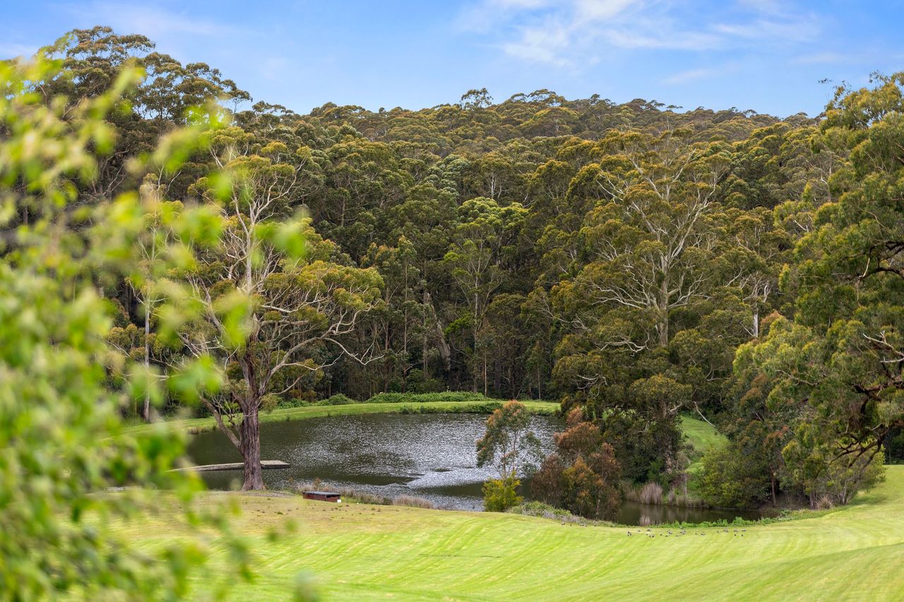Welcome to a hidden haven in the Otway hinterland – a peaceful, fully off-grid retreat perched among the trees on Benwerrin–Mt Sabine Road. Set on a 100-acre farm—60% bushland and 40% green space—the property features a large dam, picturesque wet-eucalypt forest views, and a resident mob of around 100 kangaroos. Surrounded by native bushland and complete privacy, this escape blends deep forest seclusion with sparkling distant ocean views.