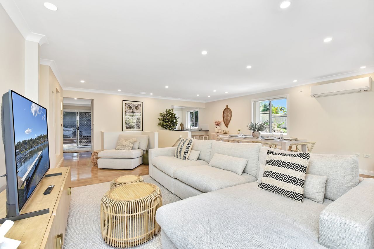 Designed for both comfort and style, the home includes multiple living areas, a large kitchen flowing seamlessly to indoor and outdoor dining spaces, ducted air-conditioning, and a generous entertaining deck with stunning water views—ideal for families or groups.