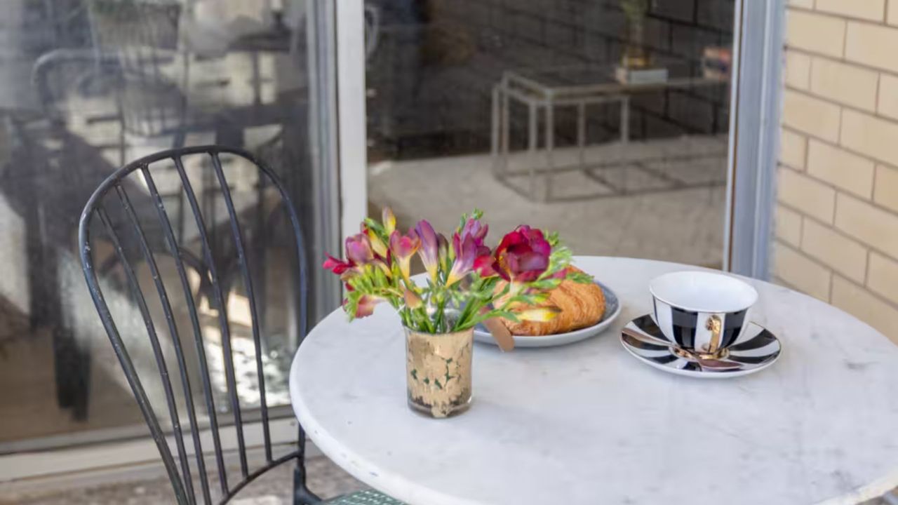 Step into a stylish ground-floor retreat that blends contemporary design with timeless charm. Recently renovated, the space features a striking kitchen perfect for gourmet cooking, a modern bathroom, and a cozy bedroom with a sumptuous queen bed. Thoughtful touches, such as smart TV, split system, and a small terrace with seating for two, ensure a comfortable and relaxing stay.