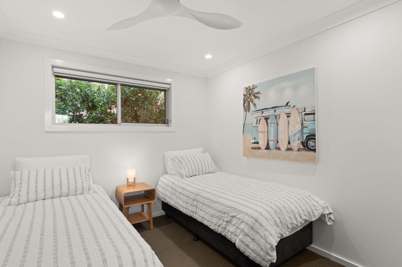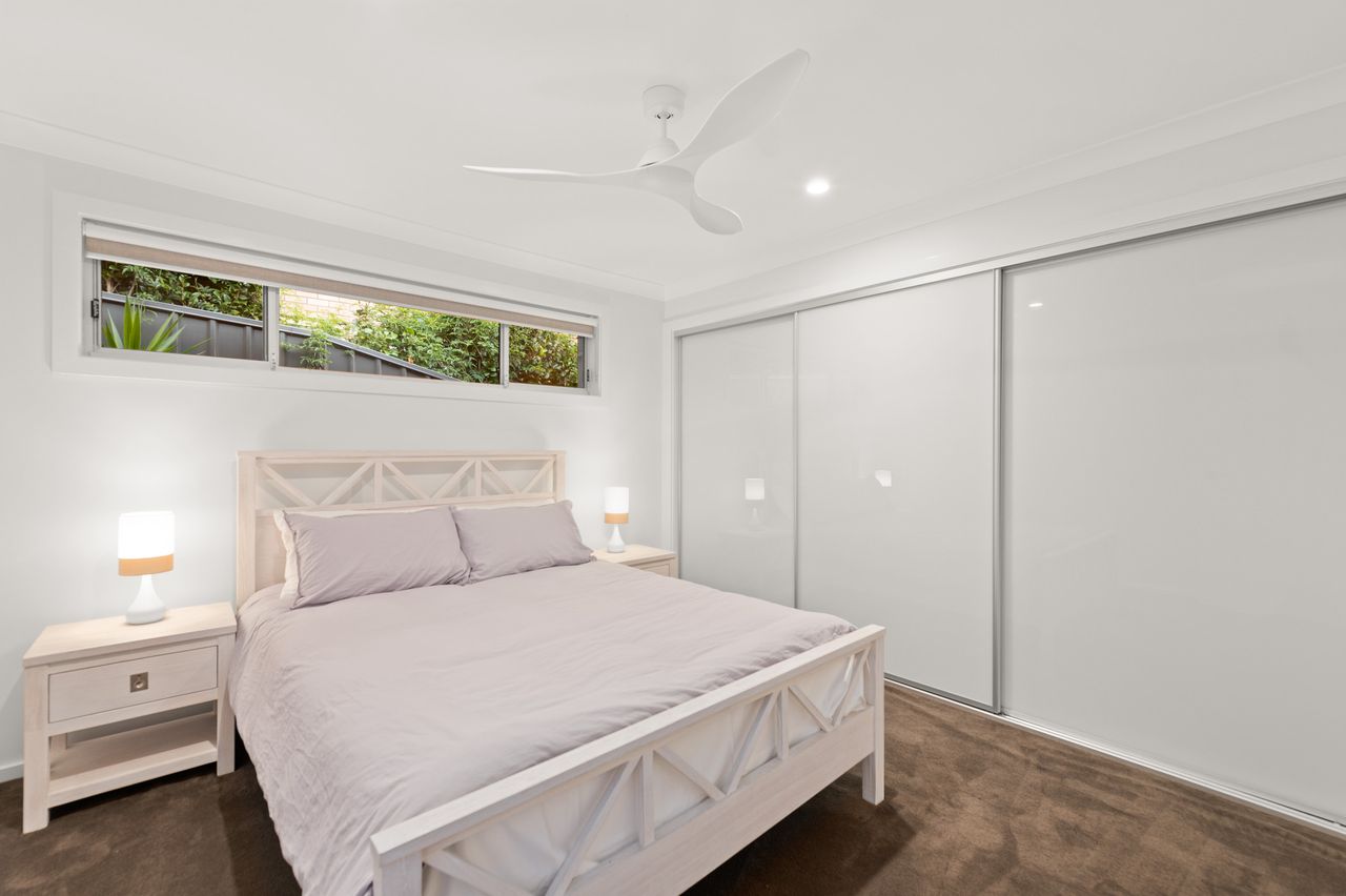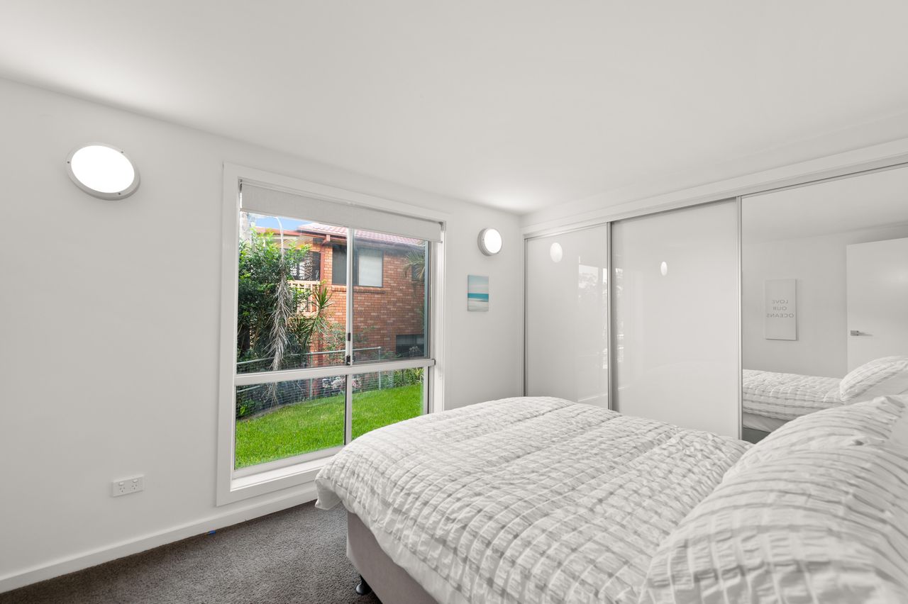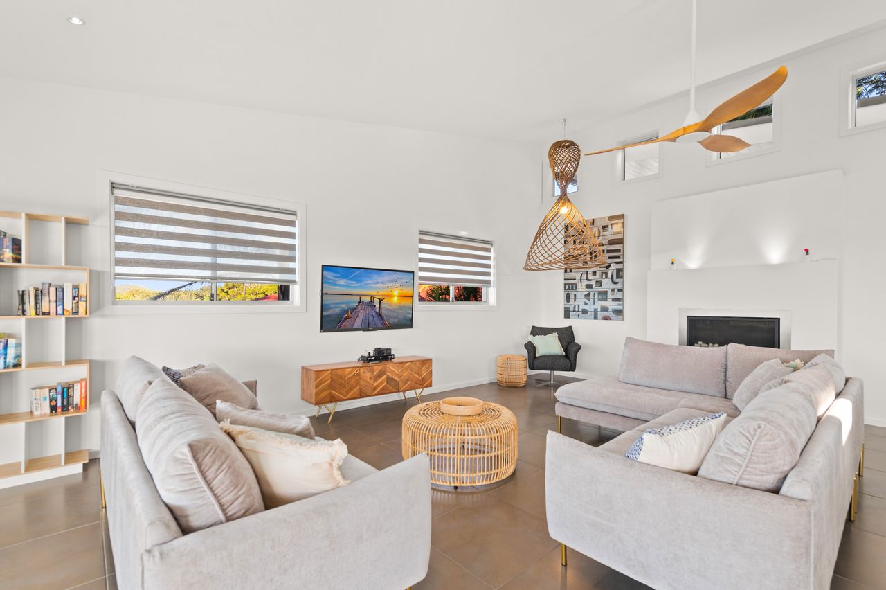 This contemporary, 2-storey holiday home with fantastic water views is the epitome of a dream coastal getaway for the whole family – including the furry family member! Just a 450m stroll takes you to Bagnalls Beach and you can follow the coast or cycle path to Dutchies Beach, which is very popular with families for its calm swimming waters and picturesque location. Both offer a playground and reserve with BBQ and picnic facilities. Further along the scenic coastline, or just over 1km more direct stroll from the house, is the heart of Nelson Bay and the d’Albora Marina. Head out on a dolphin or whale watch cruise, do some boutique shopping, enjoy drinks overlooking the water or dine at one of the award-winning restaurants.
