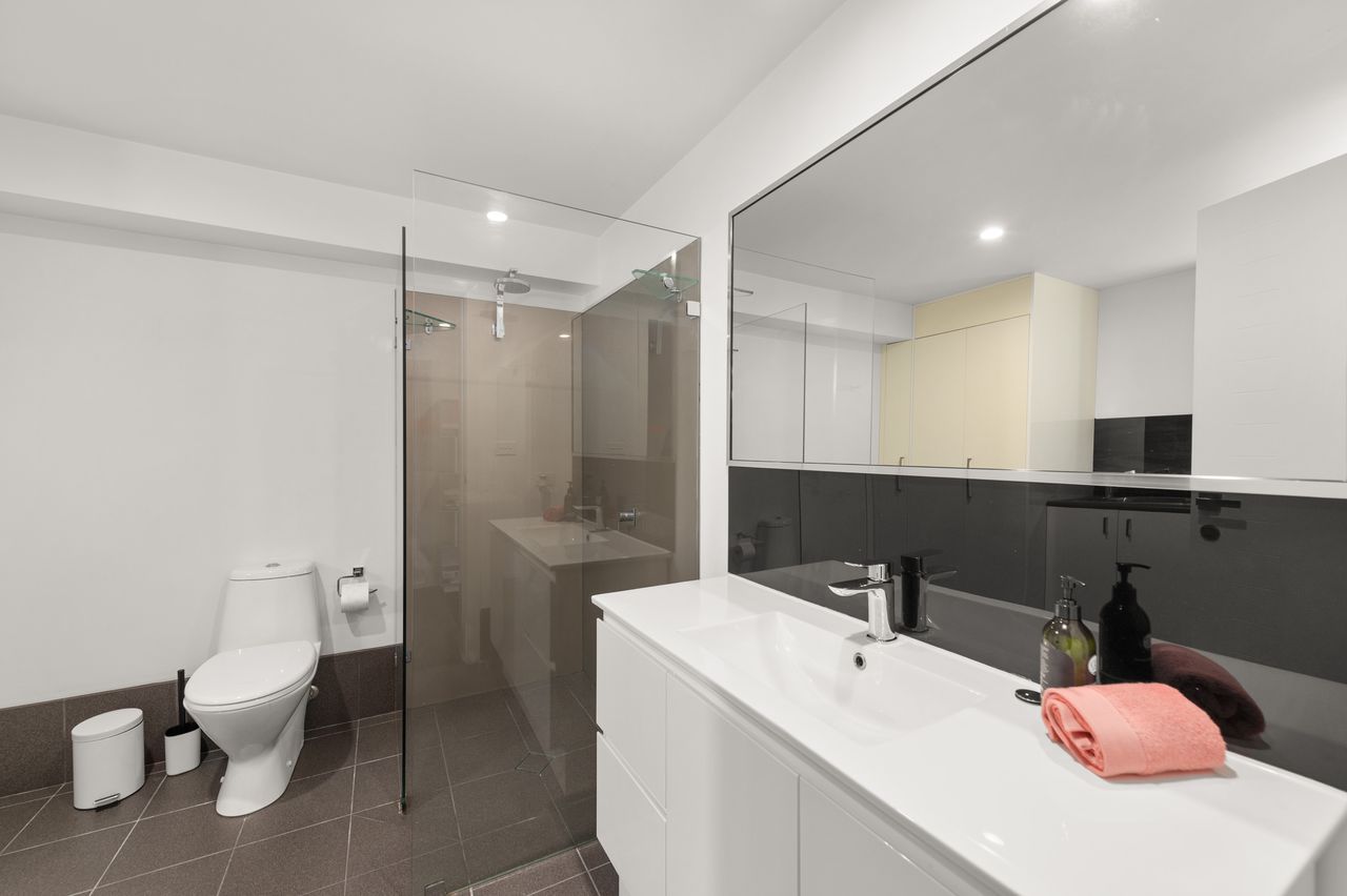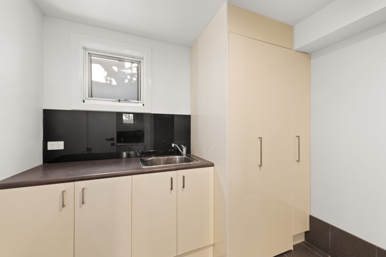 Downstairs, you’ll find the 2nd living area and outdoor deck, plus 2 bedrooms with wardrobes, one with a double bed and the other a single bed. There is also a third bathroom and laundry with washer, dryer and ironing facilities. Secure parking is available in the double garage.
