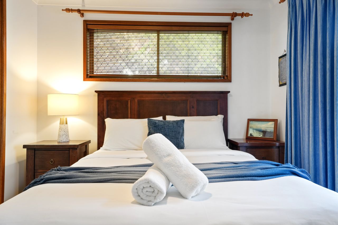 Outside, enjoy a private courtyard with BBQ—perfect for relaxed outdoor dining. Secure parking includes a garage, off-street space. Ideally located near Bagnalls Beach and Dutchmans Beach, including a popular off-leash dog-friendly area, this home is a welcoming coastal base for your next escape.