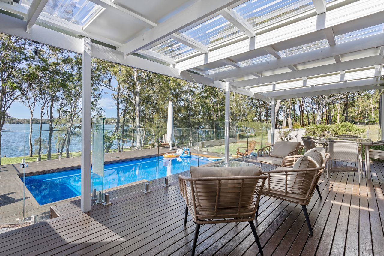 Welcome to Waterfront Paradise Lodge Brightwaters, your ultimate coastal escape nestled on the serene shores of Lake Macquarie. This luxurious property accommodates up to 10 guests, offering a perfect blend of comfort, modern amenities, and stunning water views for an unforgettable holiday experience.