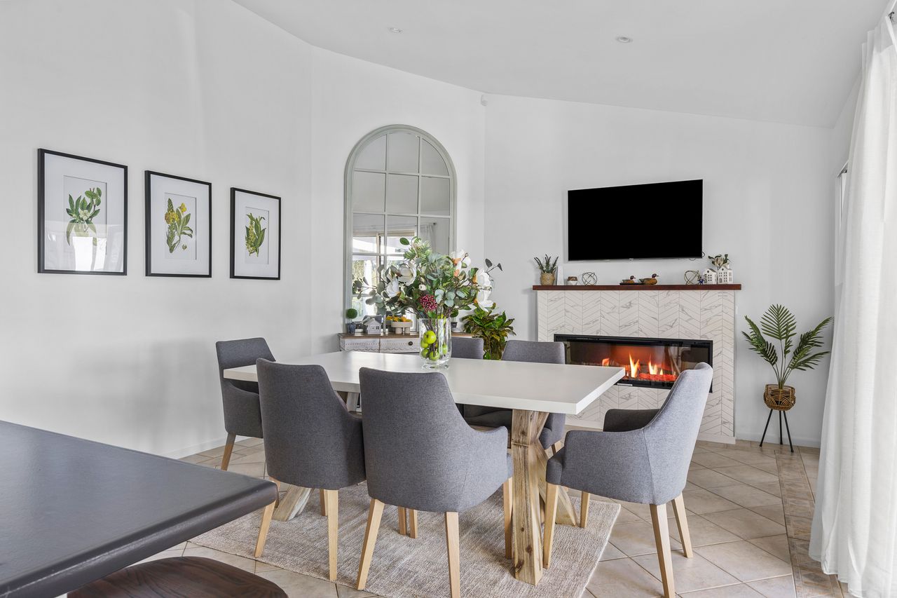 The lodge features five spacious bedrooms and two modern bathrooms, providing plenty of space for families or groups. The fully equipped kitchen includes everything you need, sleek crockery and cutlery. Guests can enjoy meals at the indoor dining table or alfresco on the patio while soaking in the tranquil waterfront views. The private pool and backyard offer a serene space to relax, and the firepit invites you to unwind under the stars.